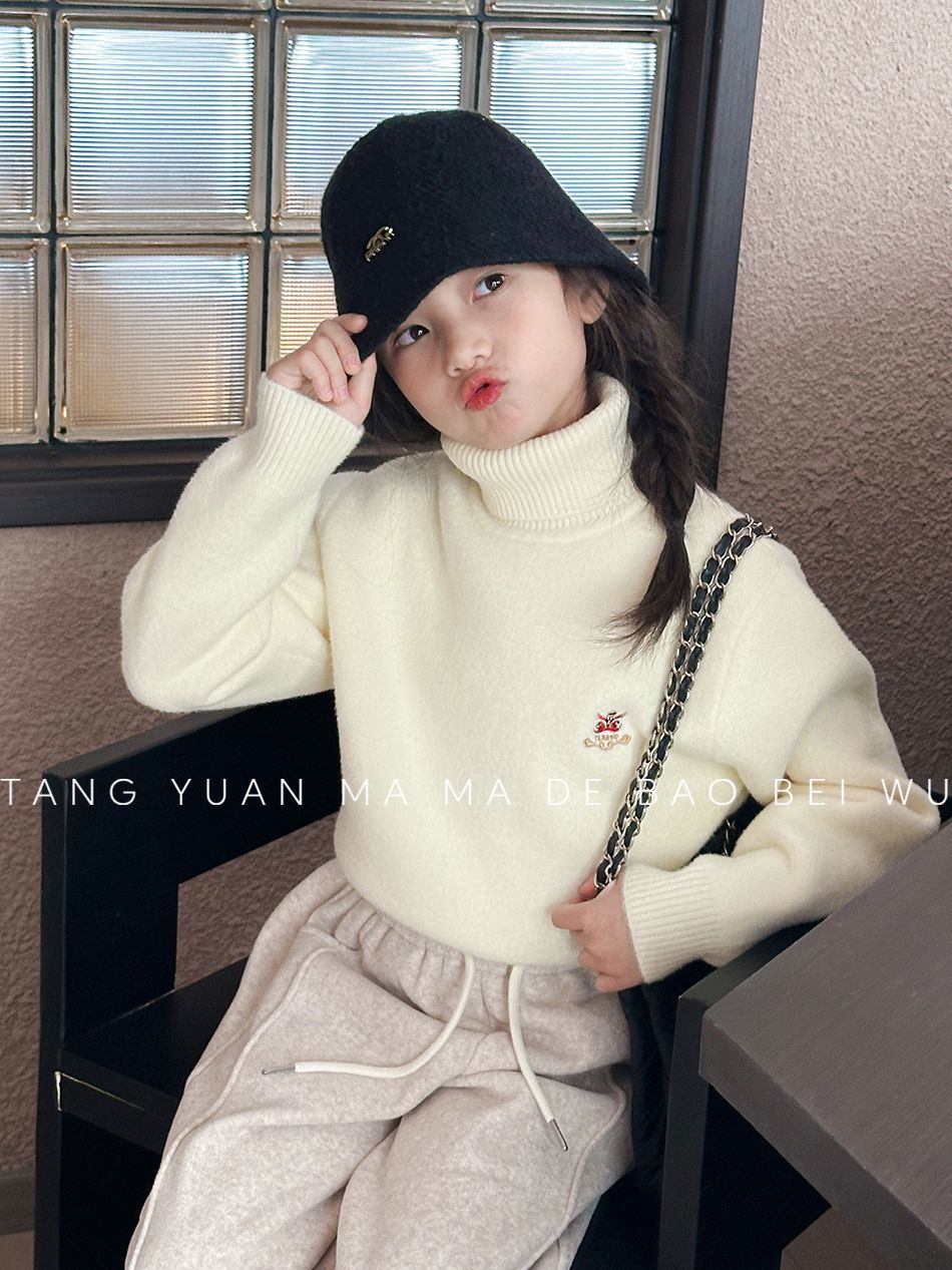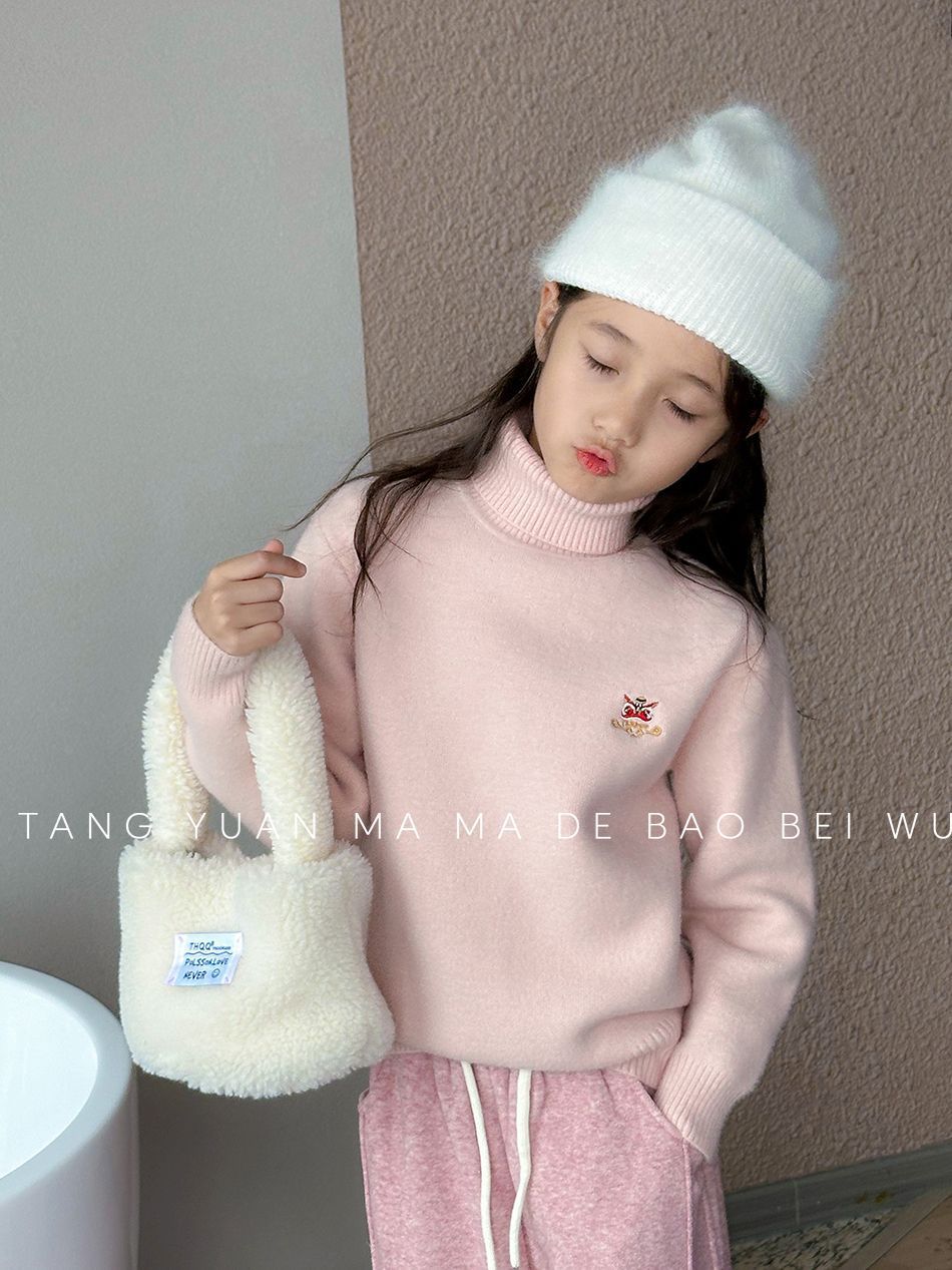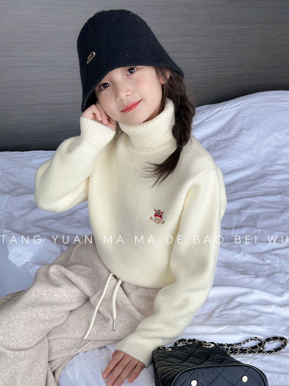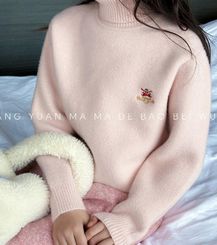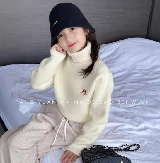 한국 여자 스웨터 2024 겨울 새 서양식 하이넥 원피스 벨벳 기모 두꺼운 니트베이스 셔츠스토어 가기
