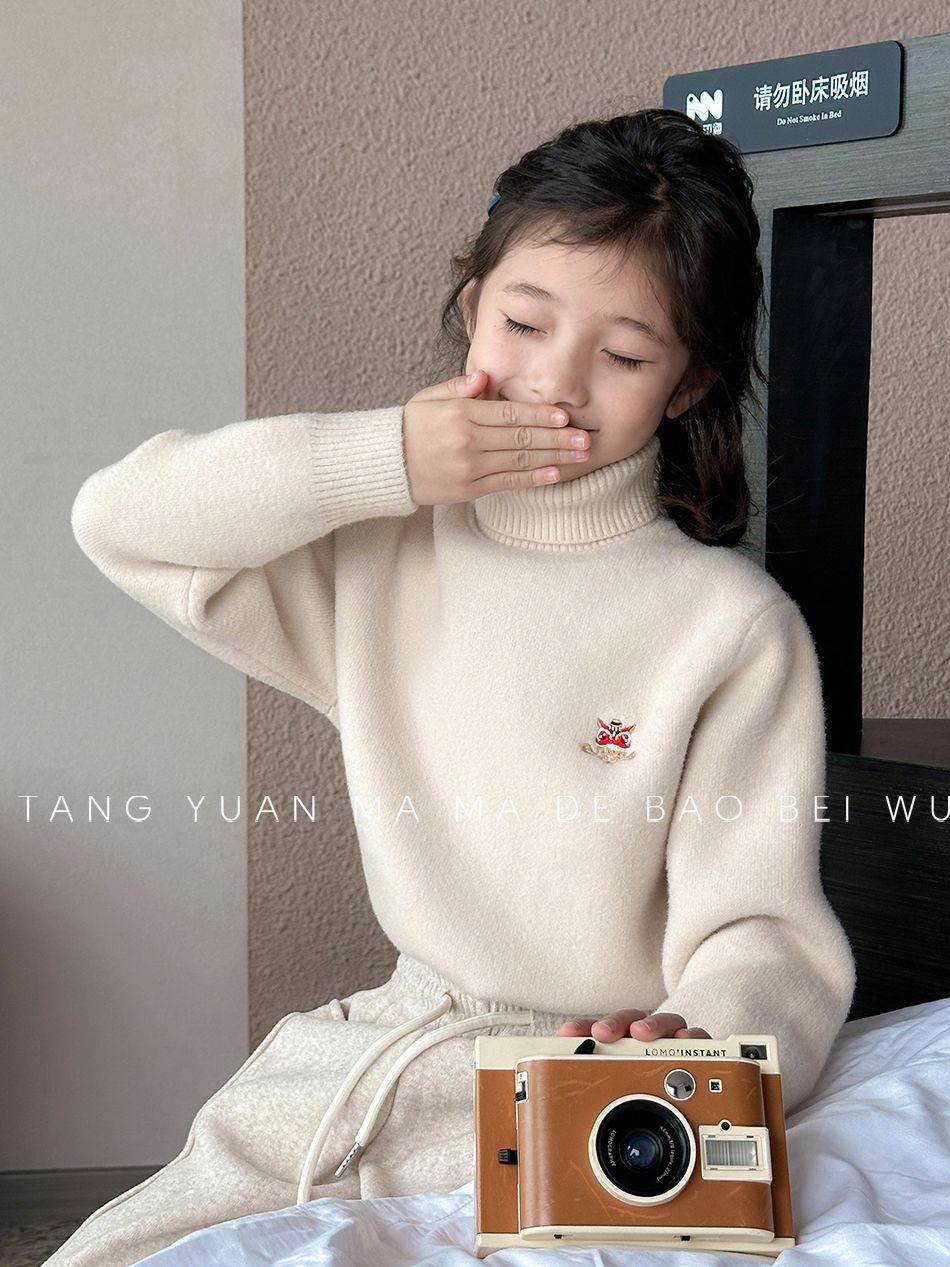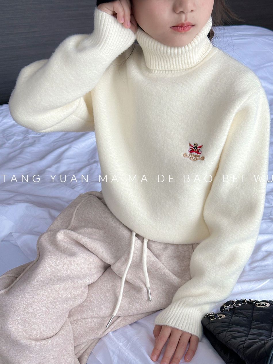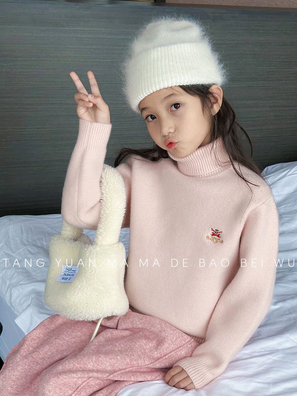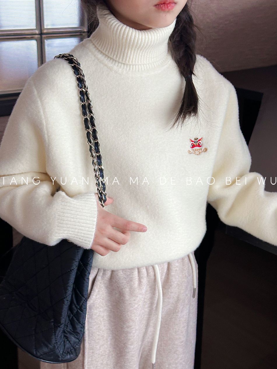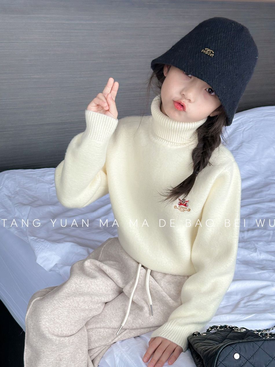 한국 여자 스웨터 2024 겨울 새 서양식 하이넥 원피스 벨벳 기모 두꺼운 니트베이스 셔츠스토어 가기