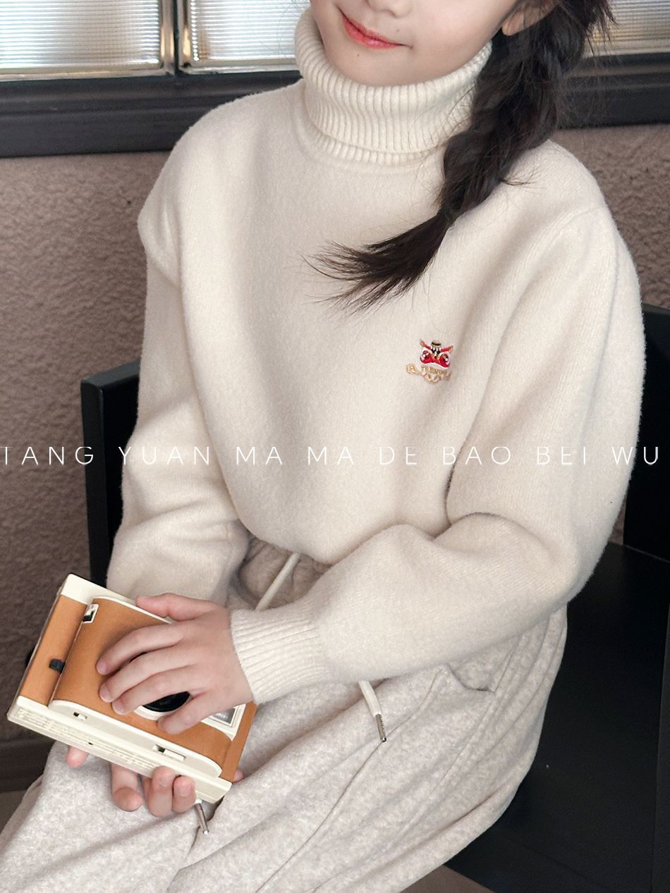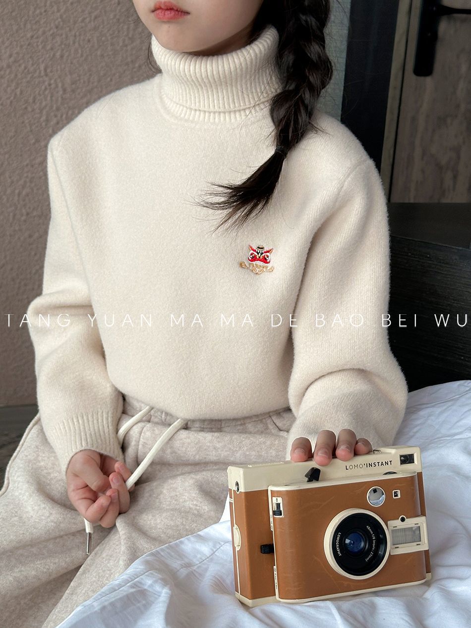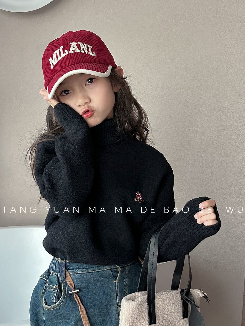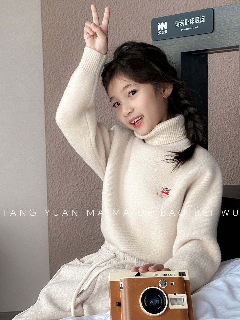 한국 여자 스웨터 2024 겨울 새 서양식 하이넥 원피스 벨벳 기모 두꺼운 니트베이스 셔츠스토어 가기