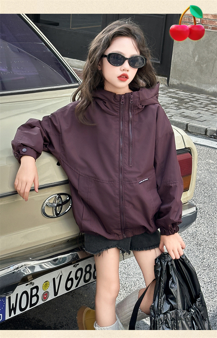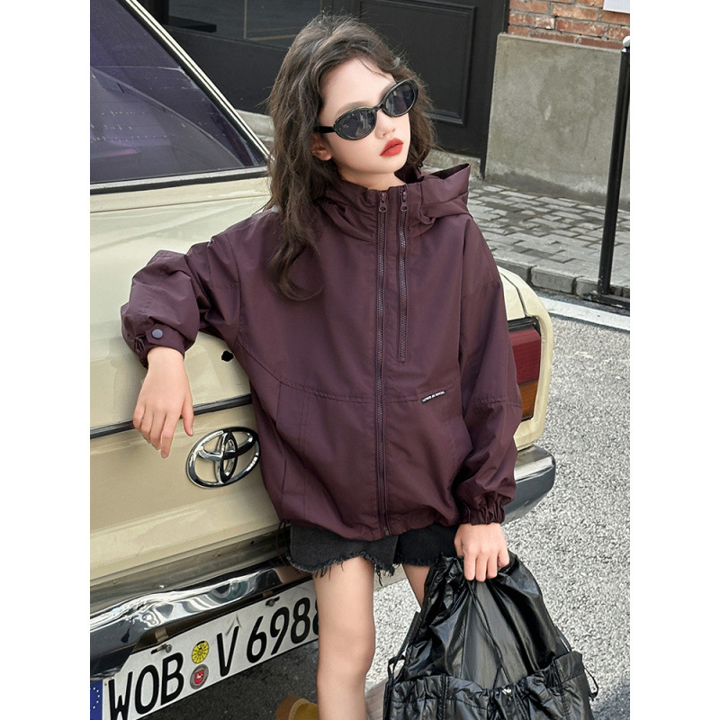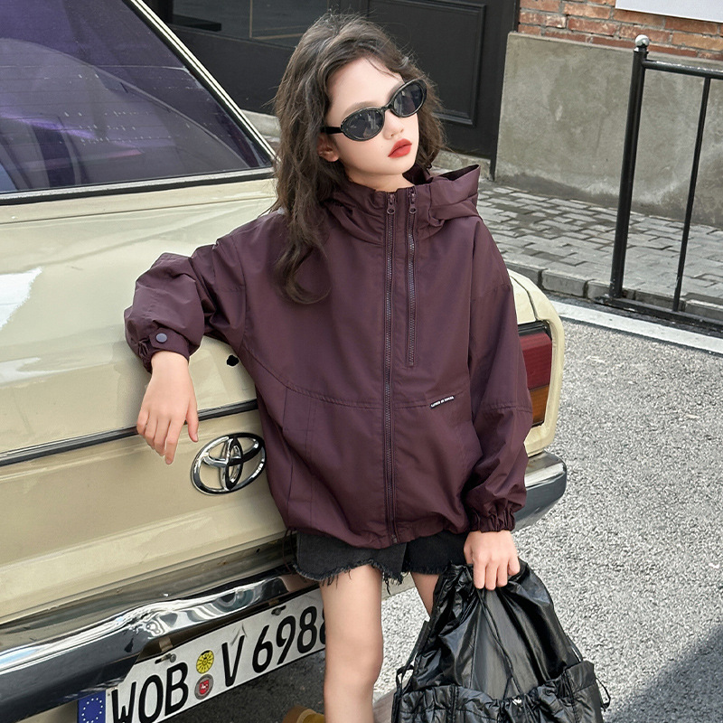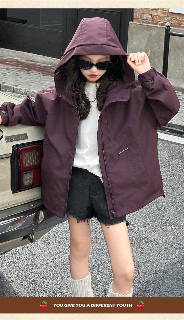 여아용 봄 가을 신상품 중대형 아동용 방풍 아웃도어 등산 재킷 후드형 더블 지퍼 충전식 재킷 트렌디