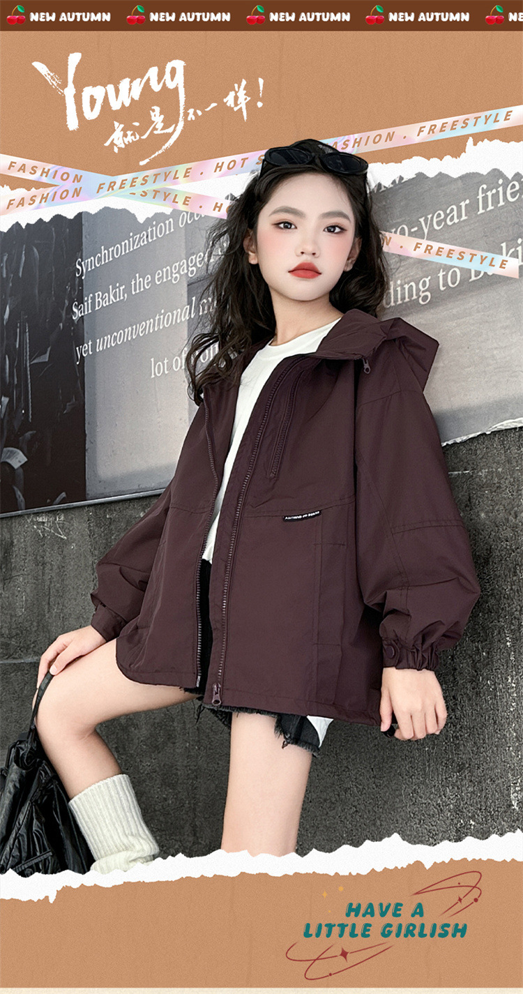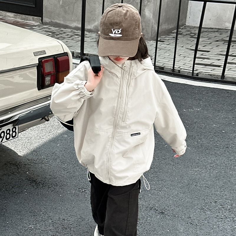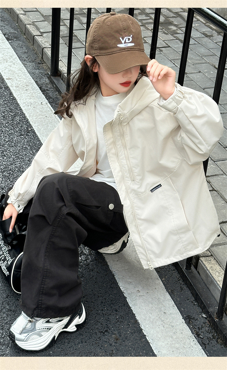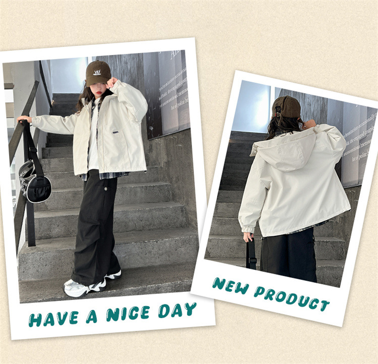 여아용 봄 가을 신상품 중대형 아동용 방풍 아웃도어 등산 재킷 후드형 더블 지퍼 충전식 재킷 트렌디
