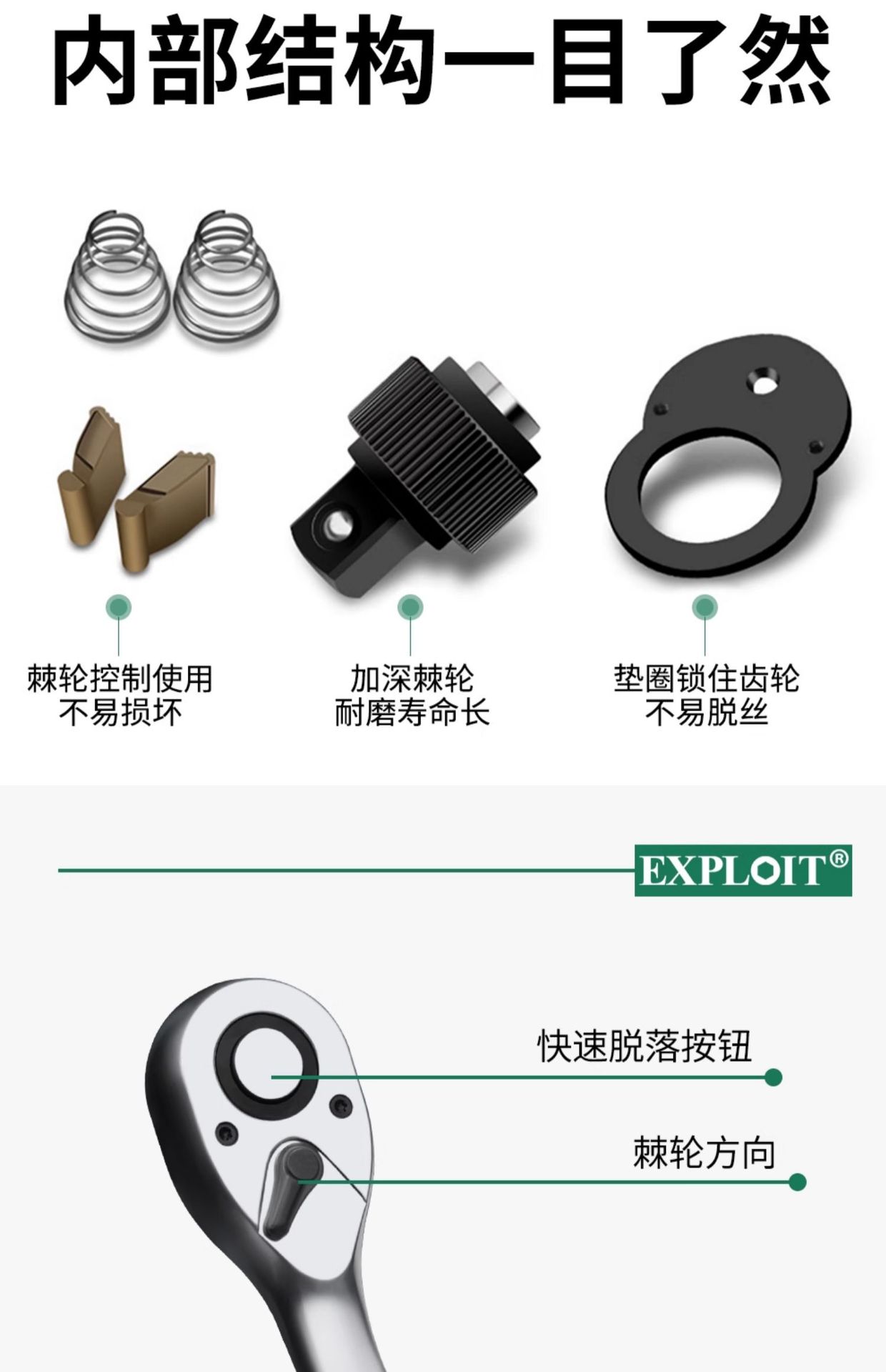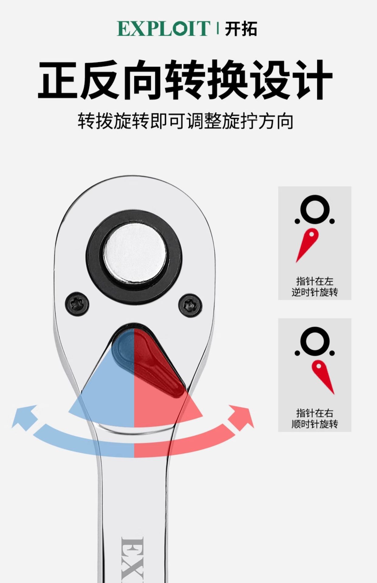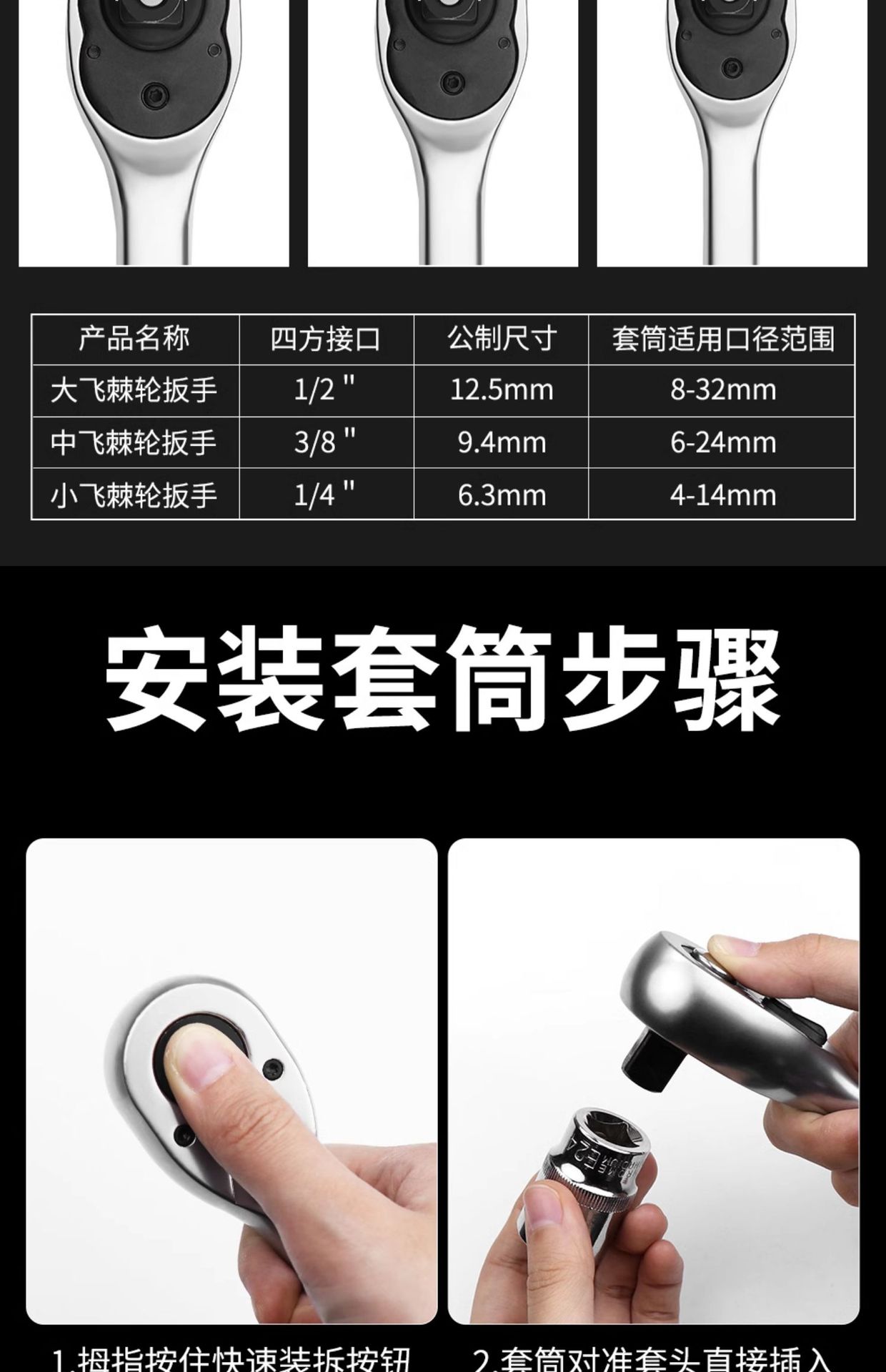 빠른 래칫 소켓 렌치 Xiaofei Zhongfei Dafei 양방향 범용 72 치아 산업 등급 외부 육각형 소매 렌치
