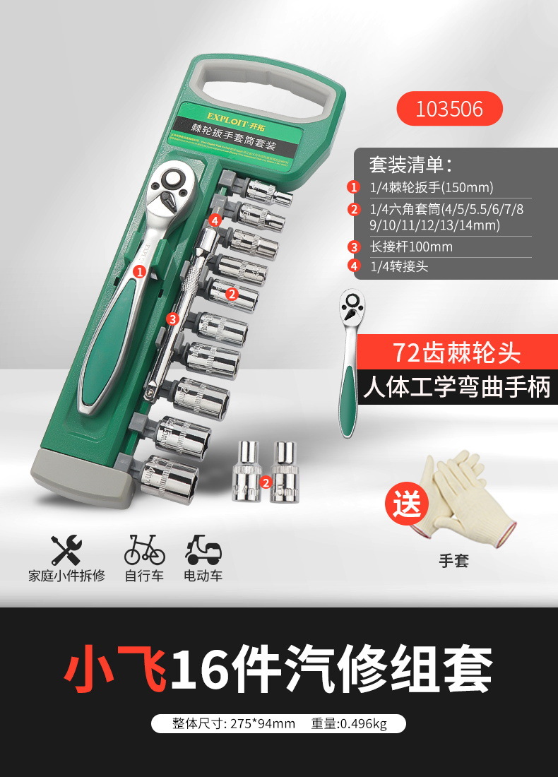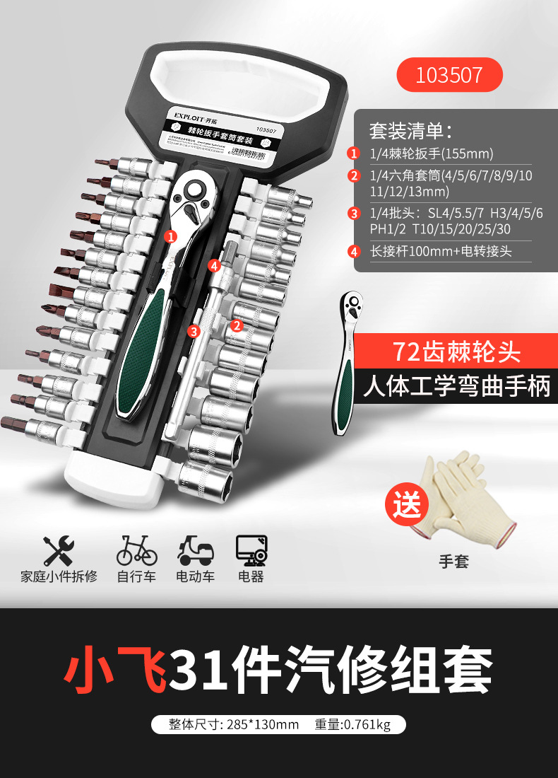• [플래그십 모델] 31종 세트(1/4” Xiaofei)) 72톱니 플라스틱 프레임, 장갑 포함