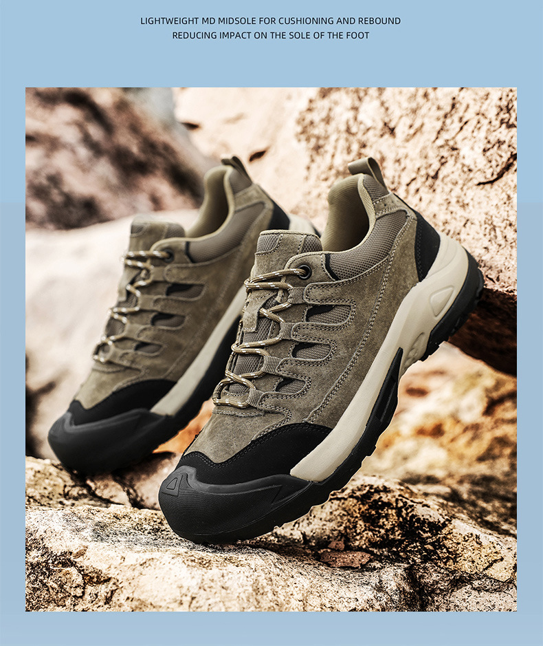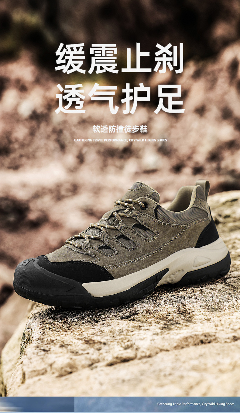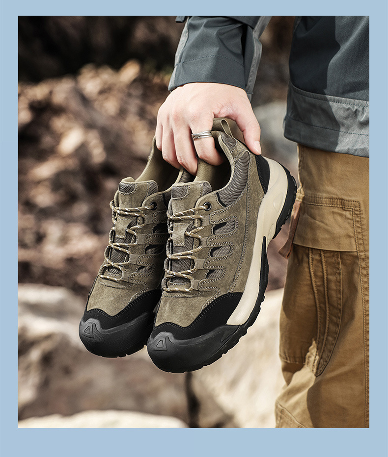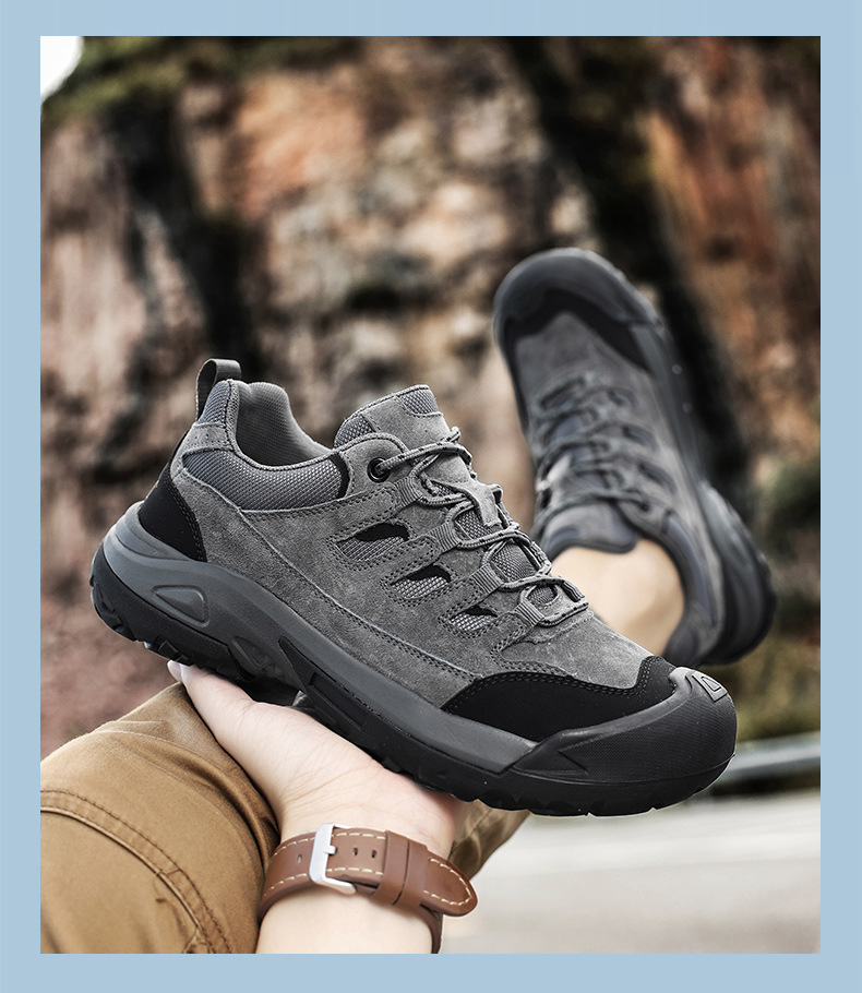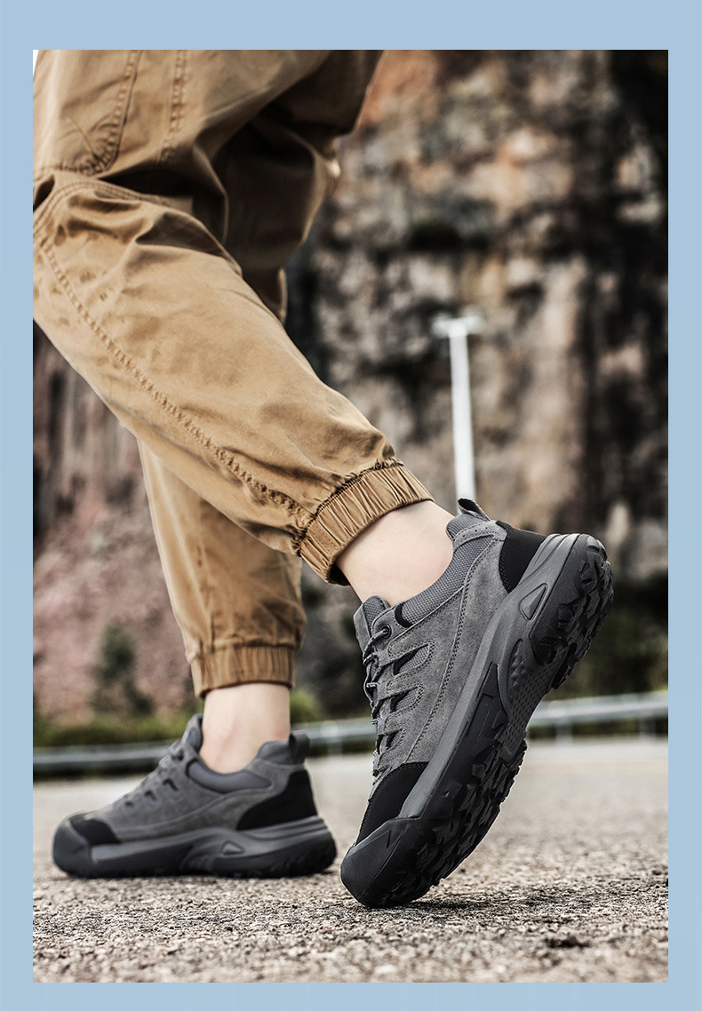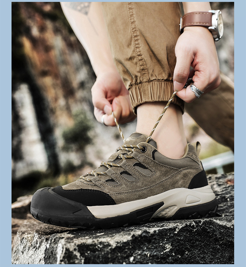 국경 간 새로운 4 시즌 가죽 야외 신발 메쉬 통기성 미끄럼 방지 캐주얼 하이킹 신발 로우 탑 하이킹 신발 도매