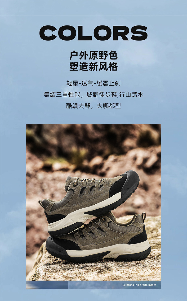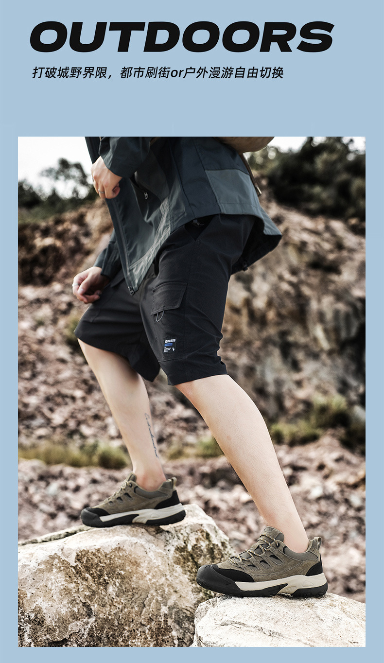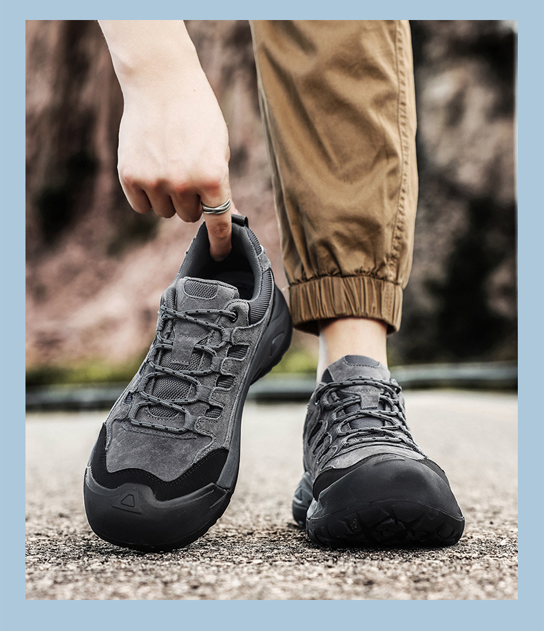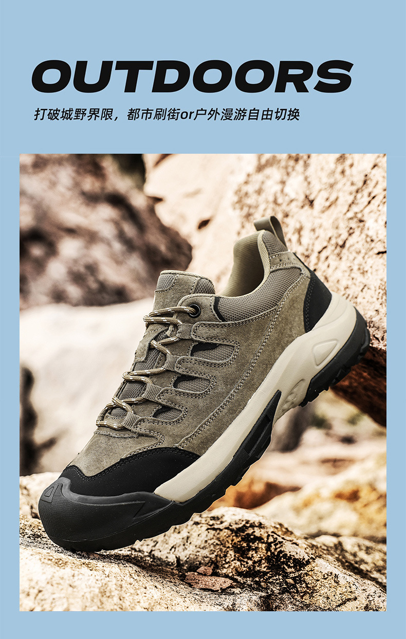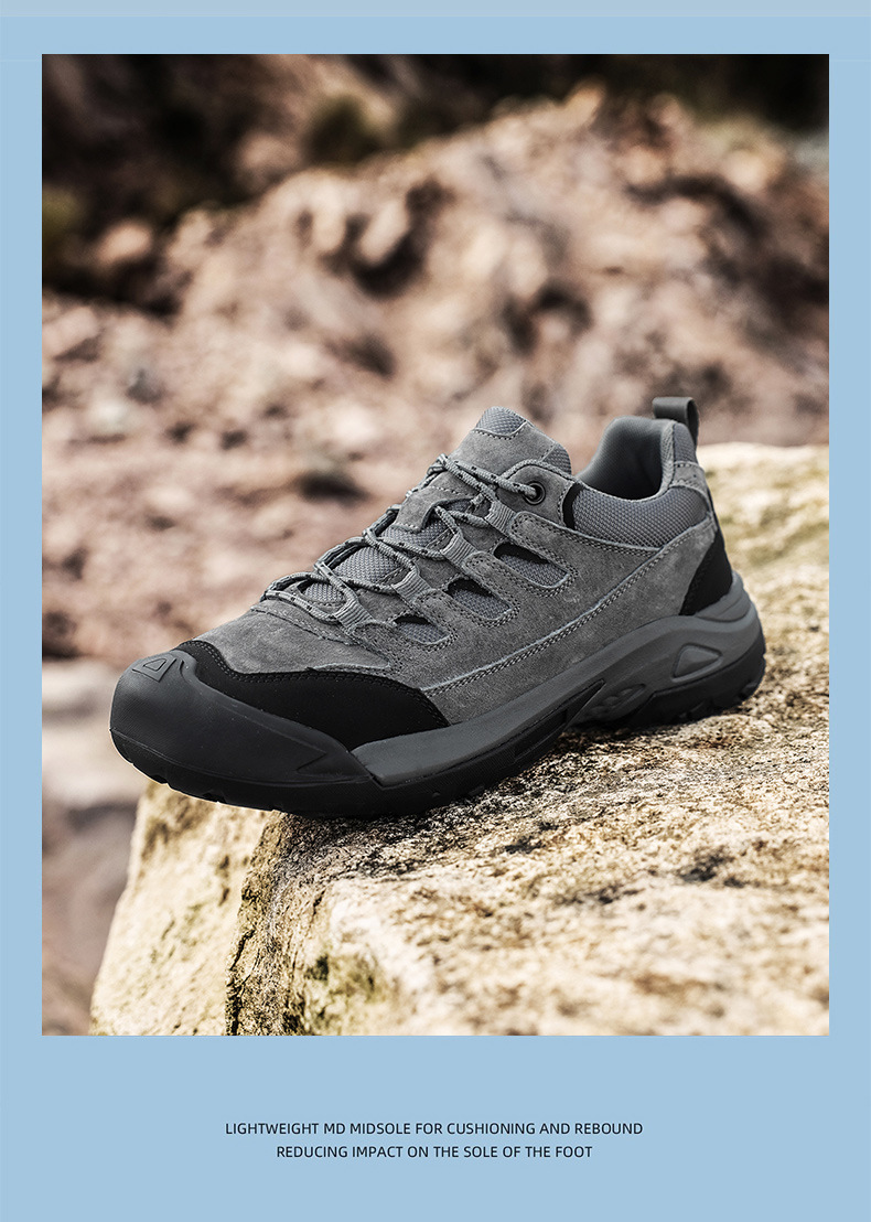 국경 간 새로운 4 시즌 가죽 야외 신발 메쉬 통기성 미끄럼 방지 캐주얼 하이킹 신발 로우 탑 하이킹 신발 도매