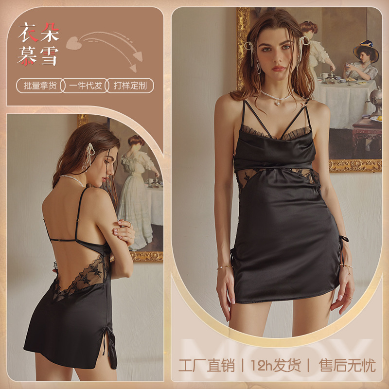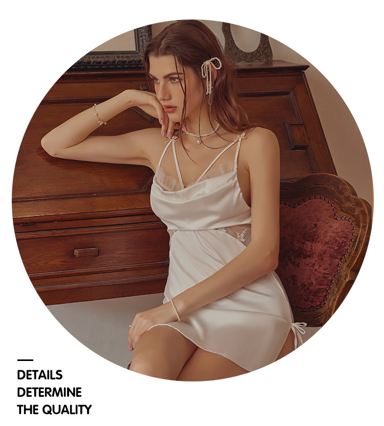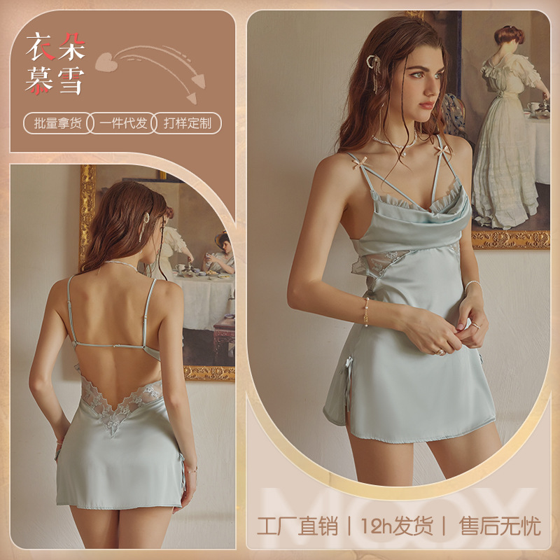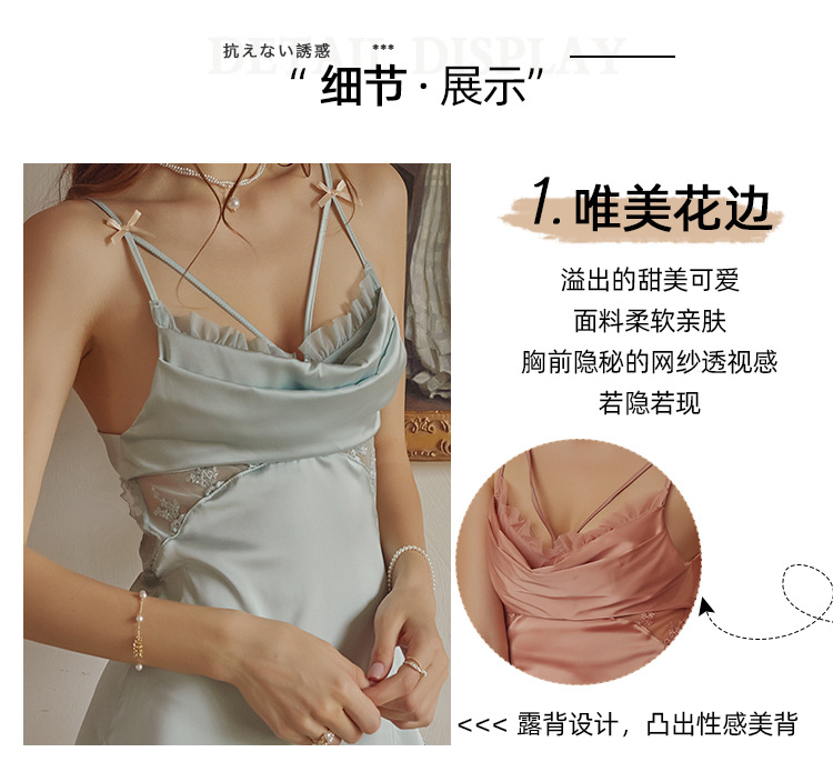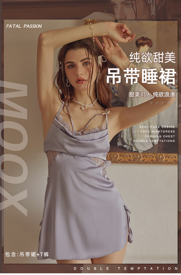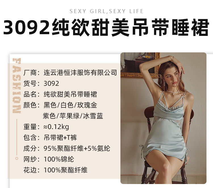 3092 섹시한 파자마 여성의 새로운 프랑스 스타일 가벼운 럭셔리 아이스 실크 잠옷 순수한 욕망 간단한 슬링 세트 집 옷스토어 가기