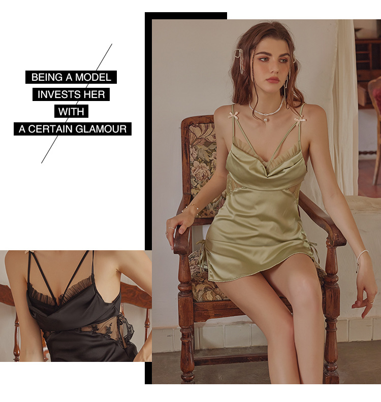 3092 섹시한 파자마 여성의 새로운 프랑스 스타일 가벼운 럭셔리 아이스 실크 잠옷 순수한 욕망 간단한 슬링 세트 집 옷