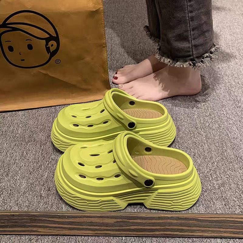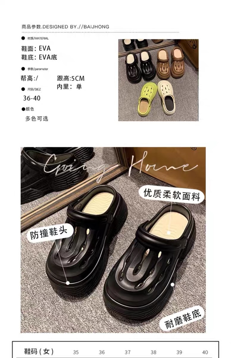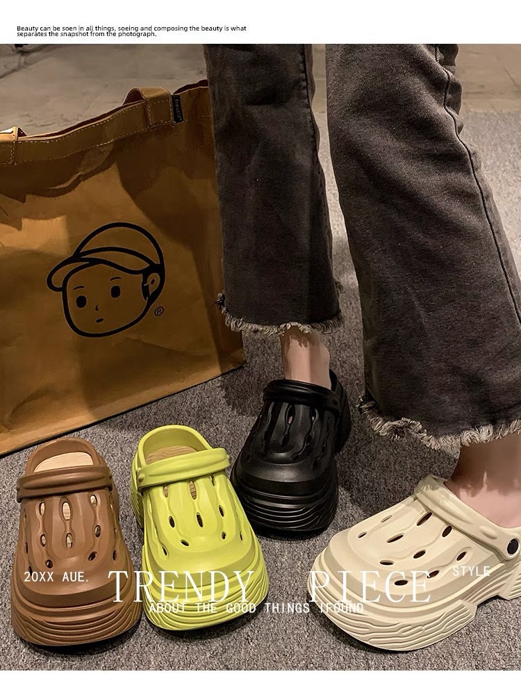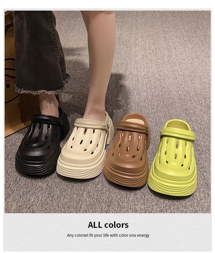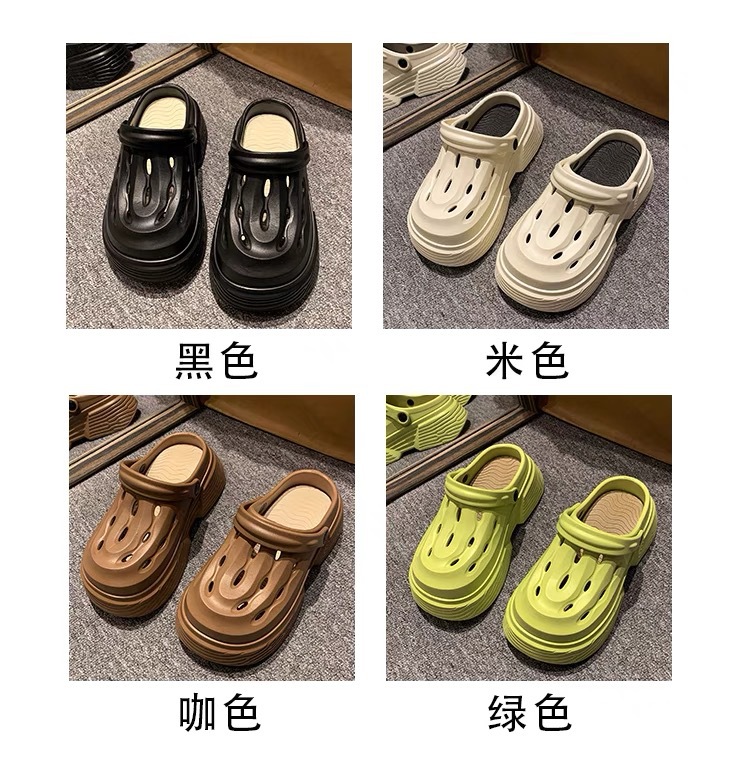 2024 새로운 구멍 높은 색상 가치 유행 여름 외부 착용 두꺼운 단독 증가 두 착용 가벼운 슬리퍼 여성 신발스토어 가기