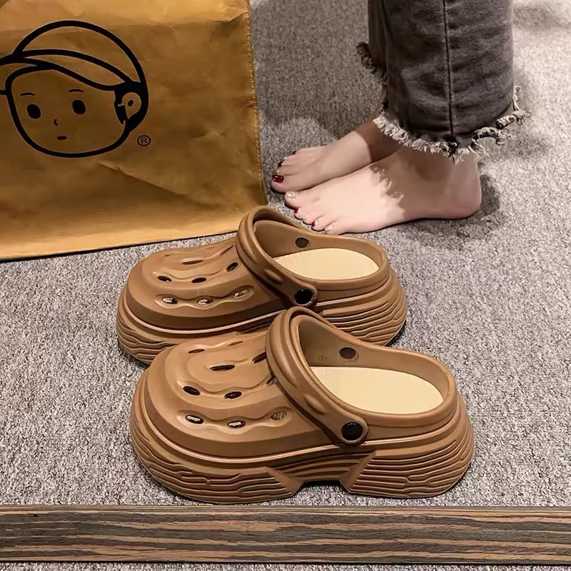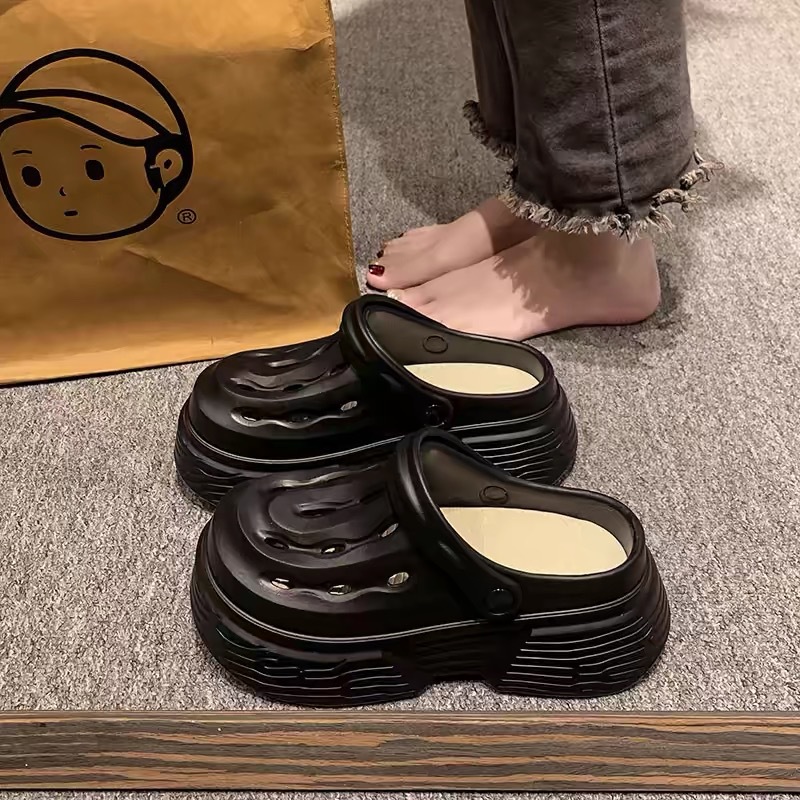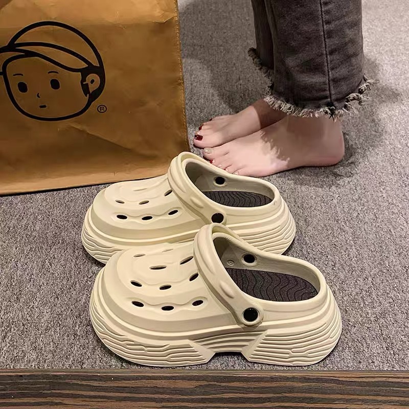 2024 새로운 구멍 높은 색상 가치 유행 여름 외부 착용 두꺼운 단독 증가 두 착용 가벼운 슬리퍼 여성 신발