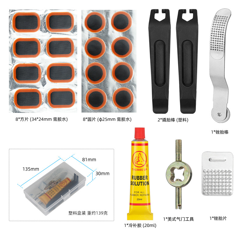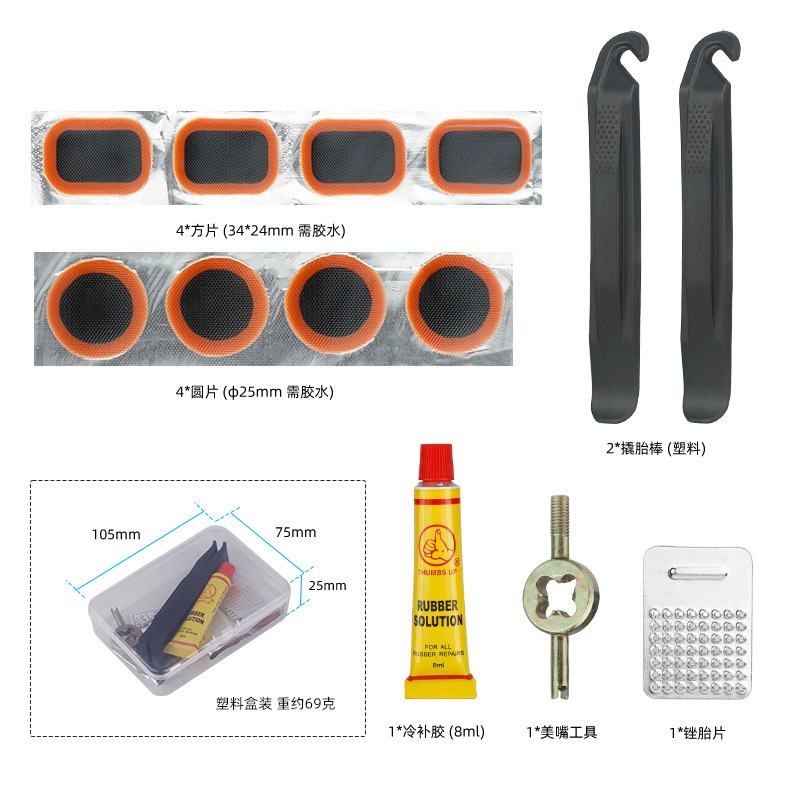 자전거 타이어 수리 도구 세트, 전기 자동차 도로용 타이어 패치, 엄지손가락 접착제, 플라스틱 타이어 레버