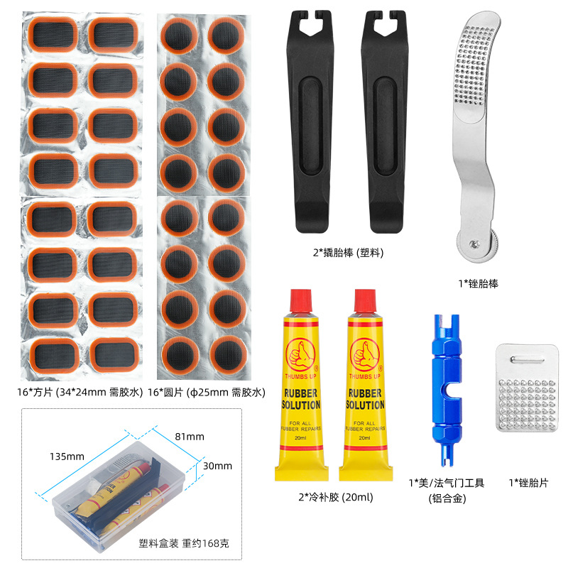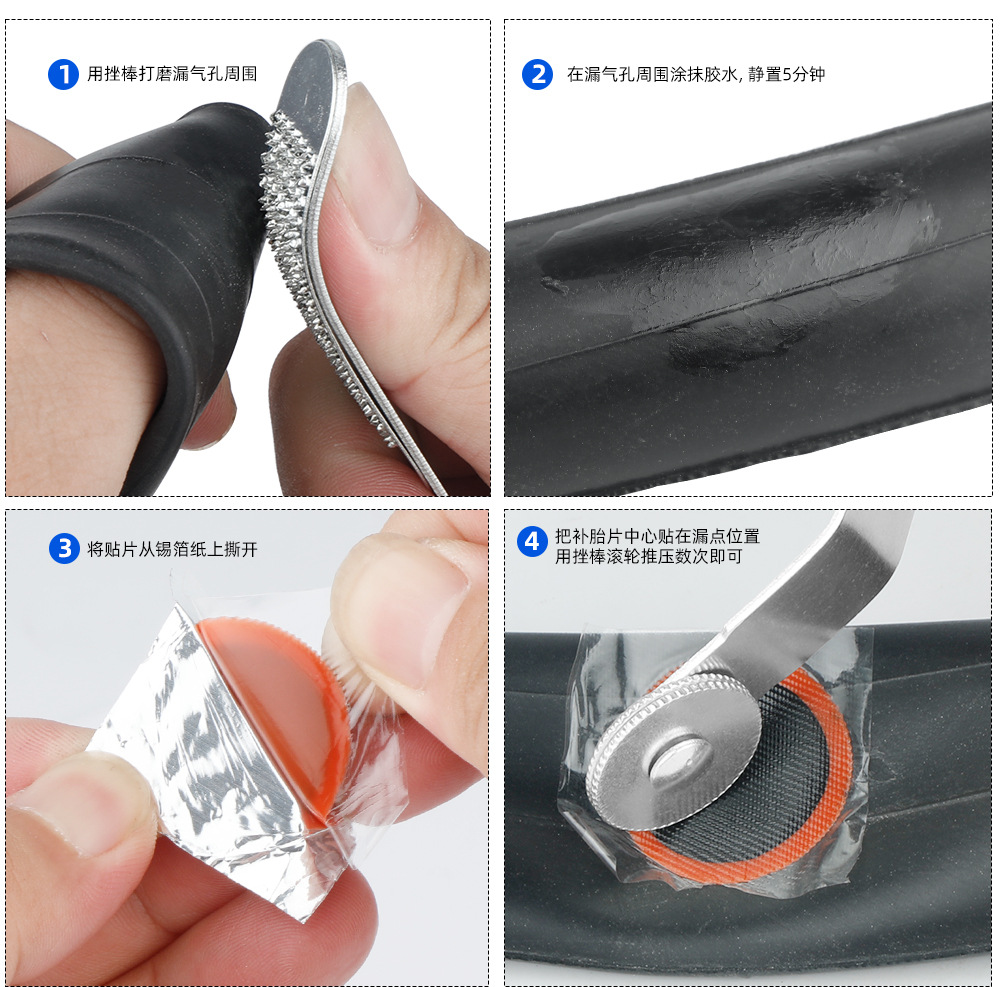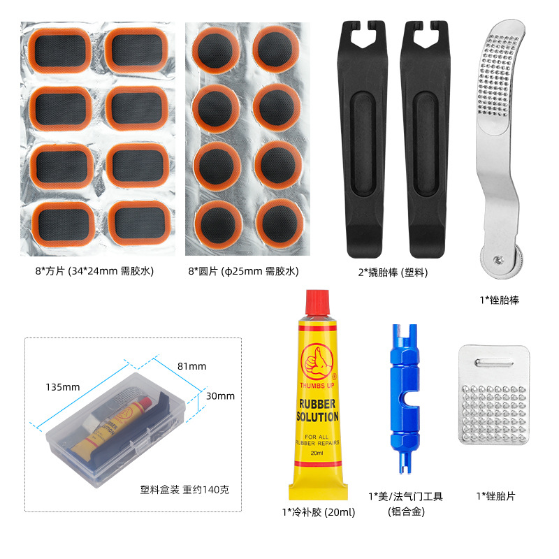 자전거 타이어 수리 도구 세트, 전기 자동차 도로용 타이어 패치, 엄지손가락 접착제, 플라스틱 타이어 레버스토어 가기