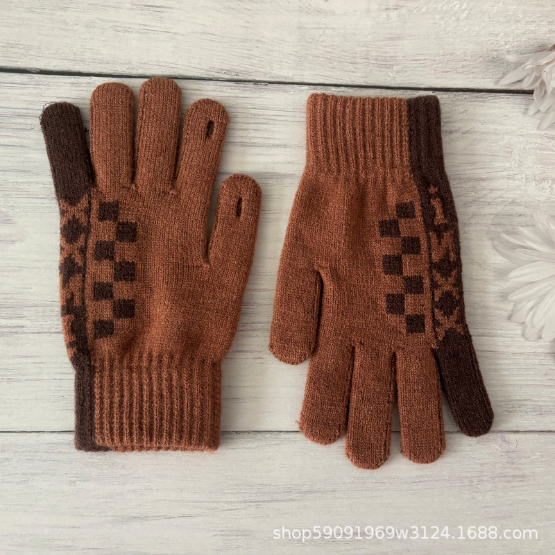 가을과 겨울 따뜻한 남녀 양모 니트 손가락 야외 한국식 5 손가락 냉방풍 승마 장갑 한국식