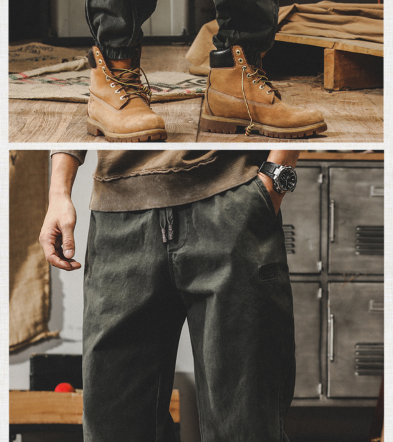 제이 레노 미국식 헤비 레트로 크라우드 워크 바지 남자 가을 야외 패션 브랜드 루즈 바지 남자 다리 발가락 캐주얼 바지