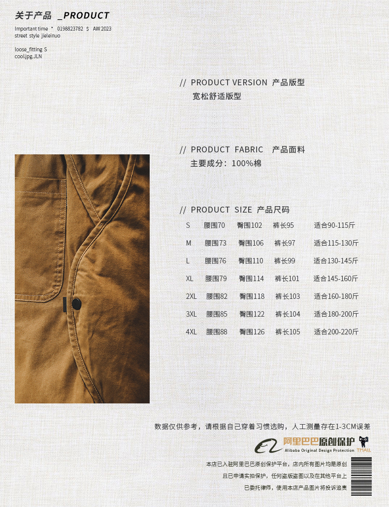 제이 레노 미국식 헤비 레트로 크라우드 워크 바지 남자 가을 야외 패션 브랜드 루즈 바지 남자 다리 발가락 캐주얼 바지스토어 가기