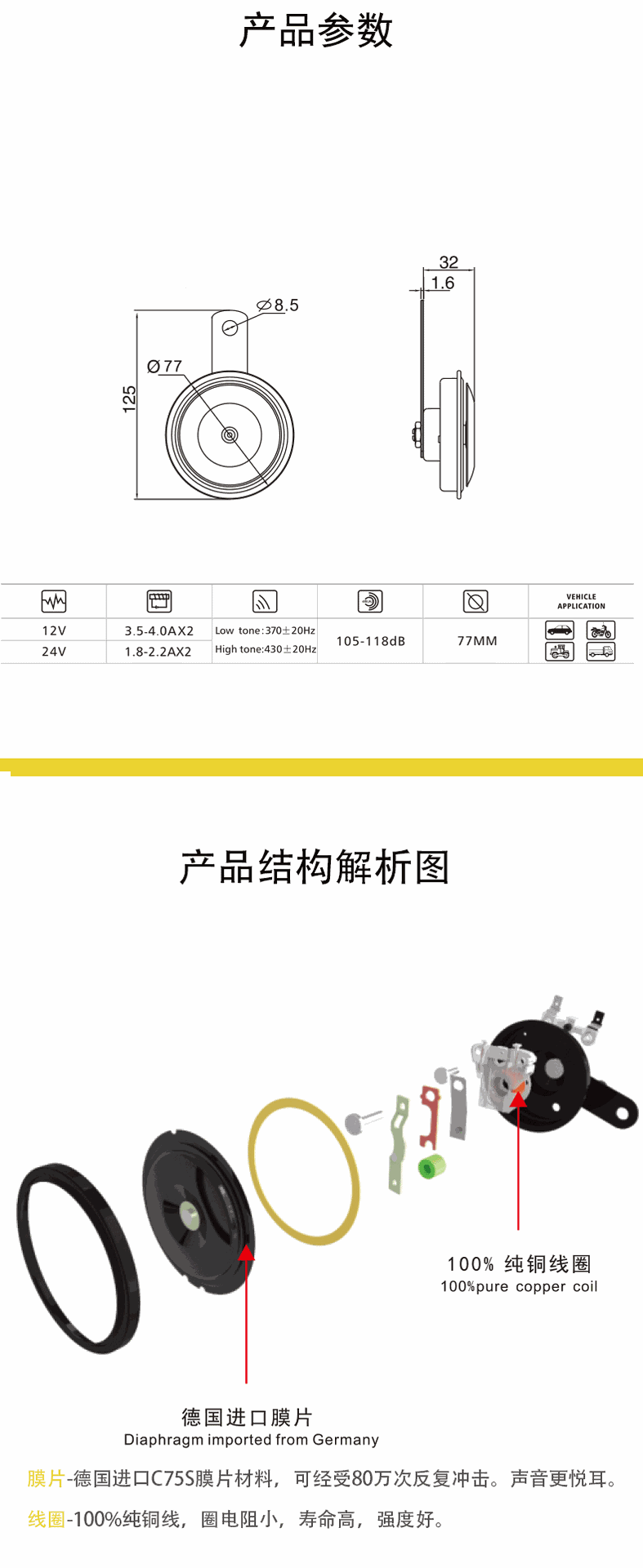 공장 직접 공급 자동차 휘슬 경적 업그레이드 모델 경적 슈퍼 시끄러운 고음 및 저음 더블 톤 분지 유형 경적 자동차 액세서리스토어 가기