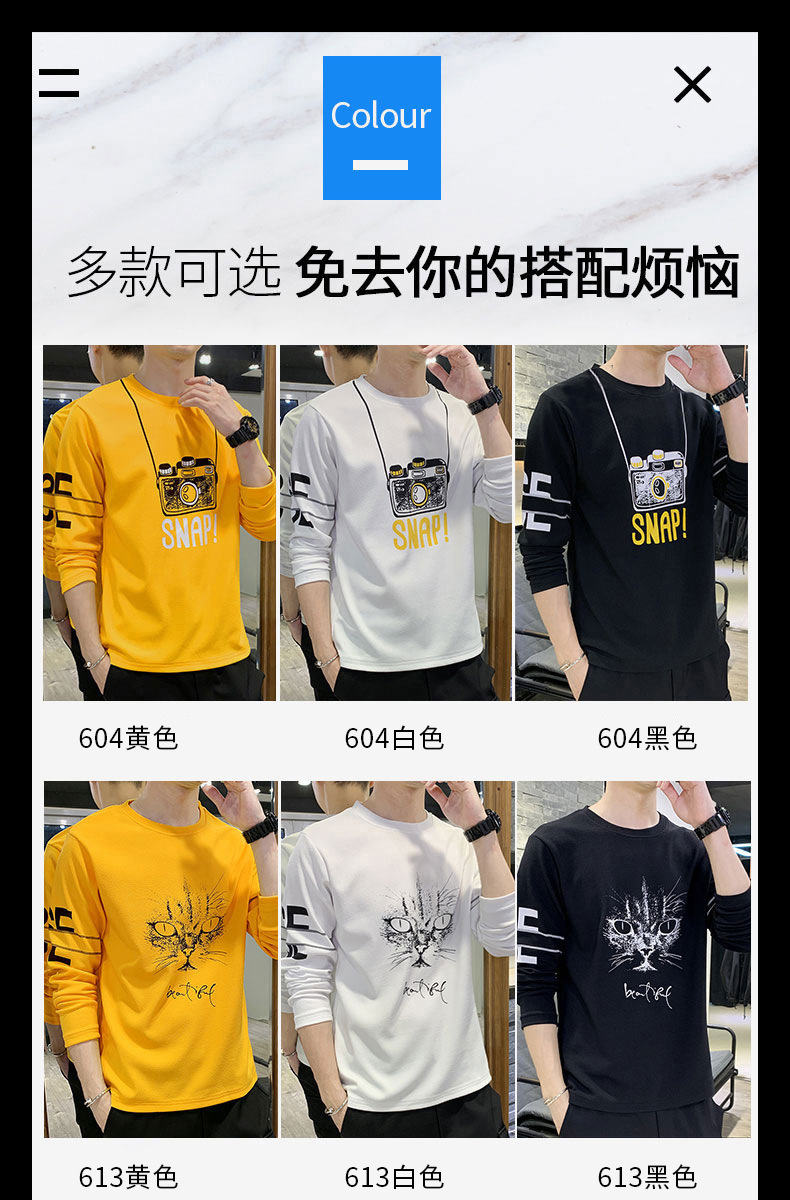 긴팔 티셔츠 남자 2024 가을 새 패션 인 스웨터베이스 셔츠 한국 스타일 탑 옷 슬림핏 남자 가을 옷스토어 가기