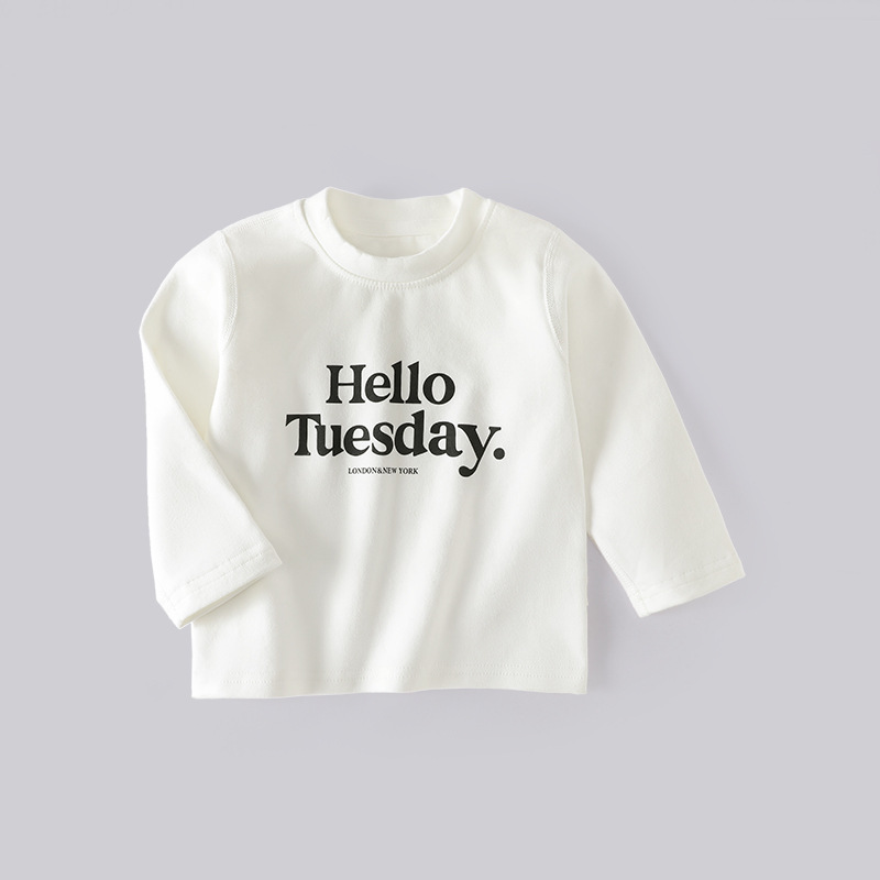 대외 무역 어린이 티셔츠 부드러운 벨벳 가을, 겨울 편지 흰색 긴팔 탑 한국 스타일 뼈없는 가을 옷 소년 바닥 셔츠스토어 가기