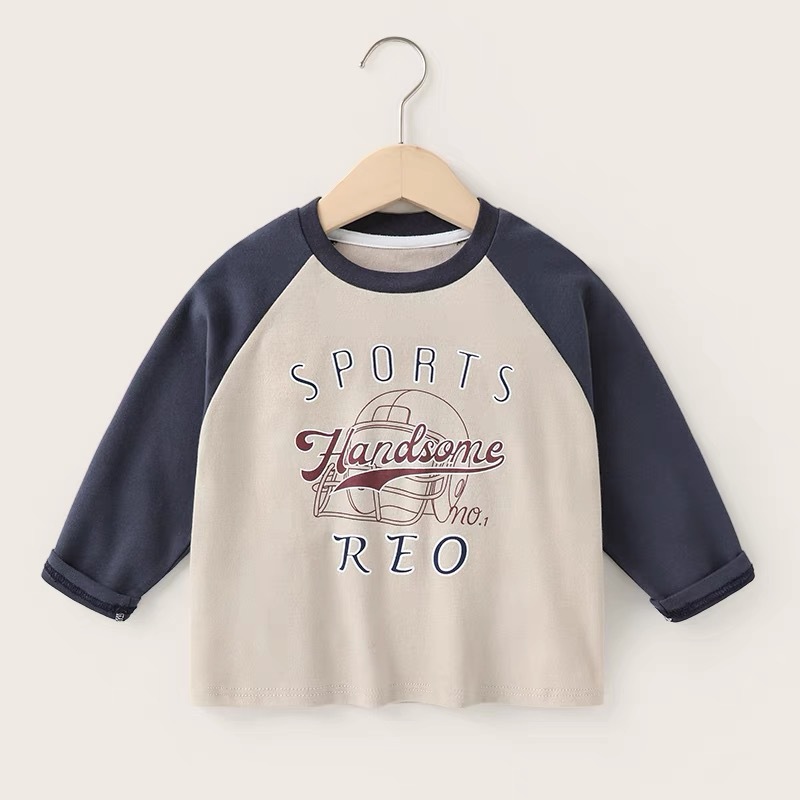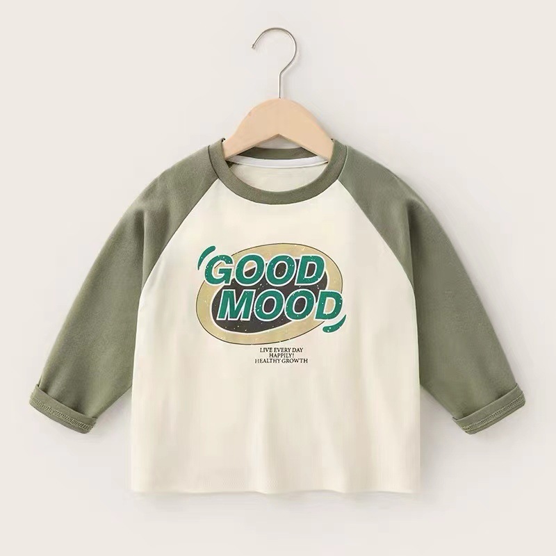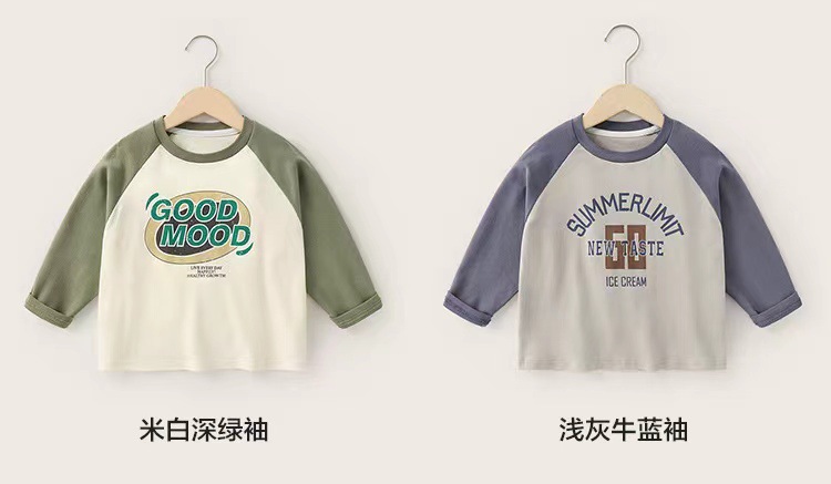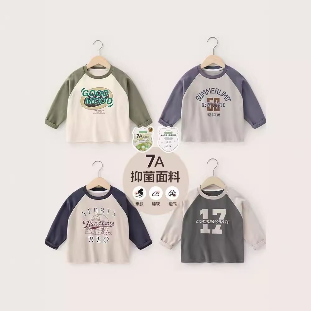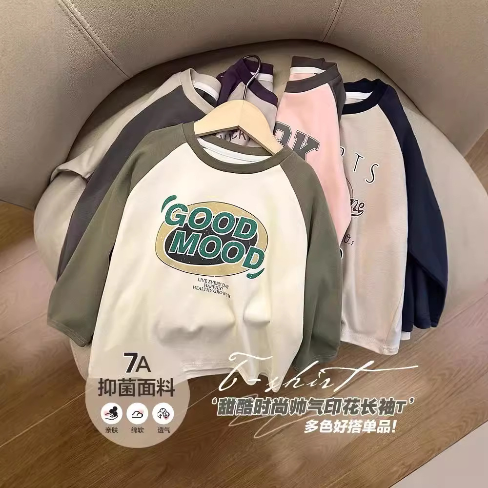 어린이 한국식 인쇄 라글란 티셔츠 소년 봄과 가을 올 매치 라운드 넥 긴팔 중첩 어린이 7A 항균베이스 탑스토어 가기