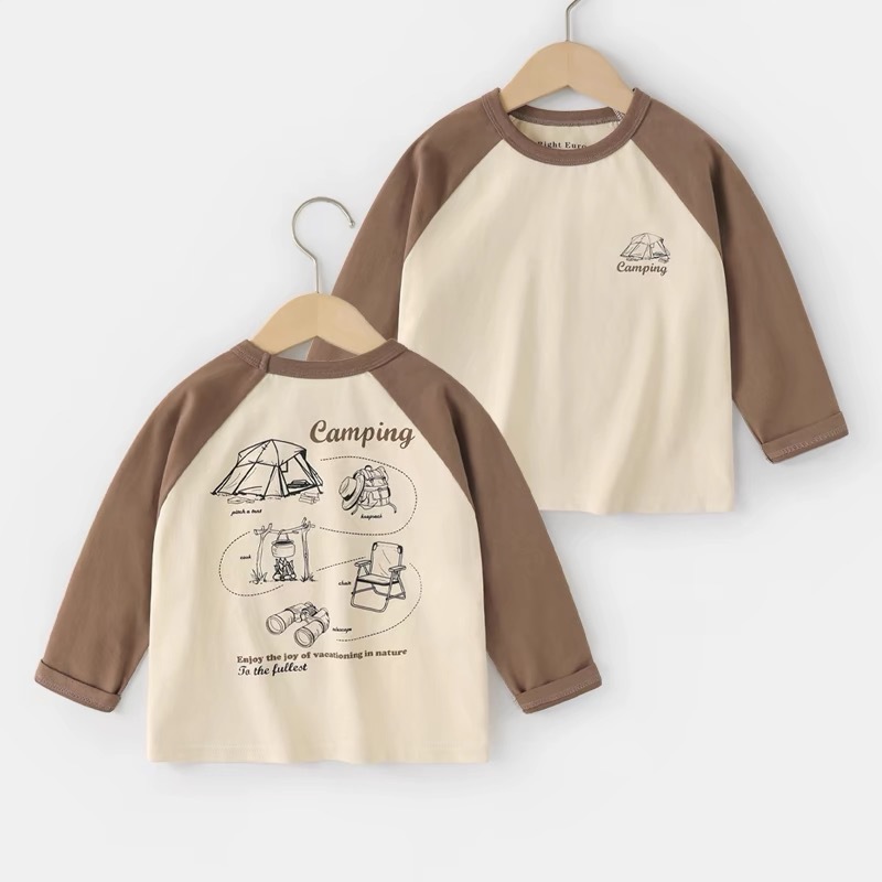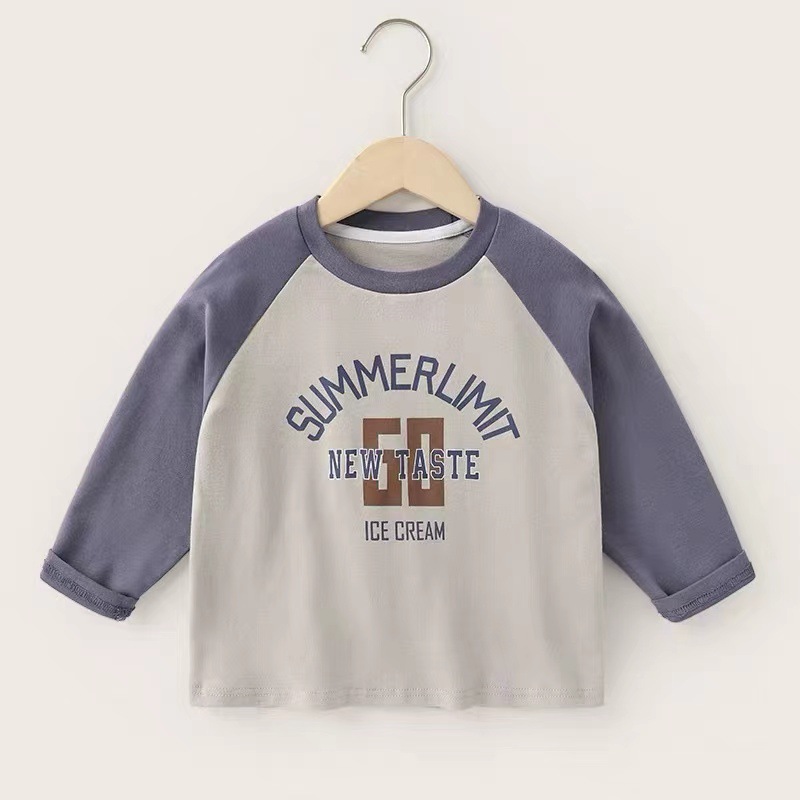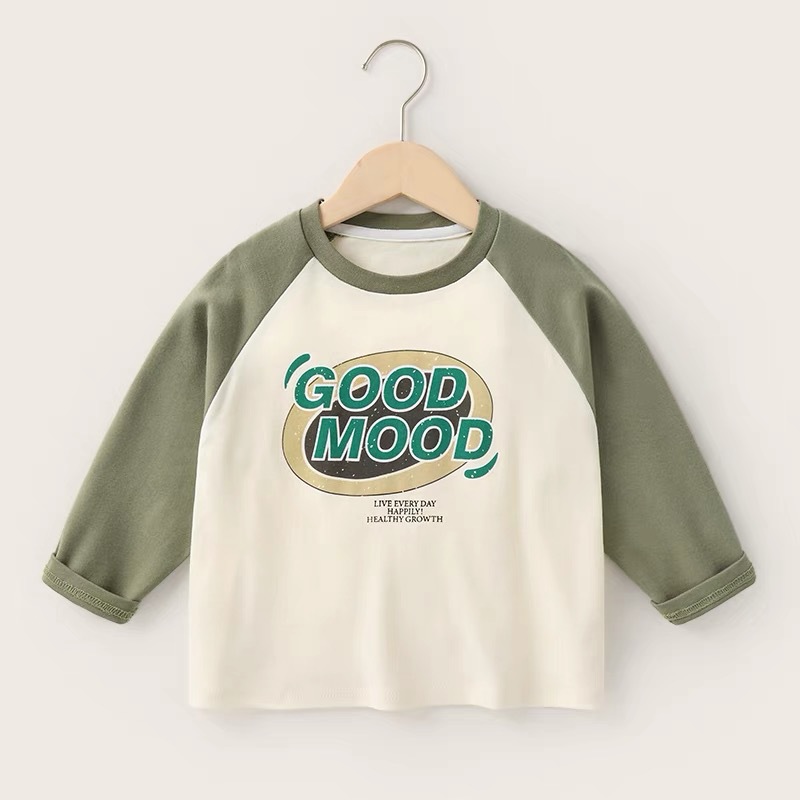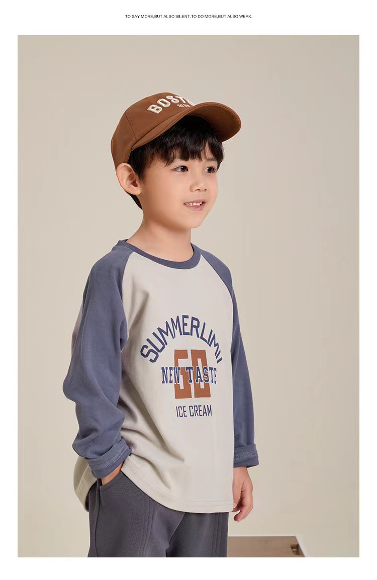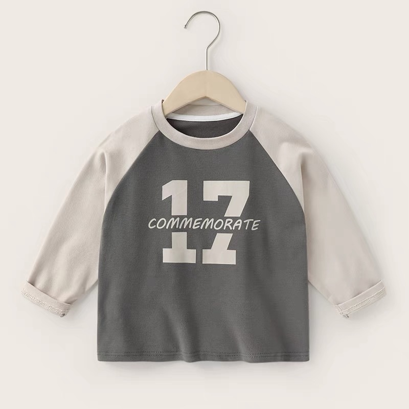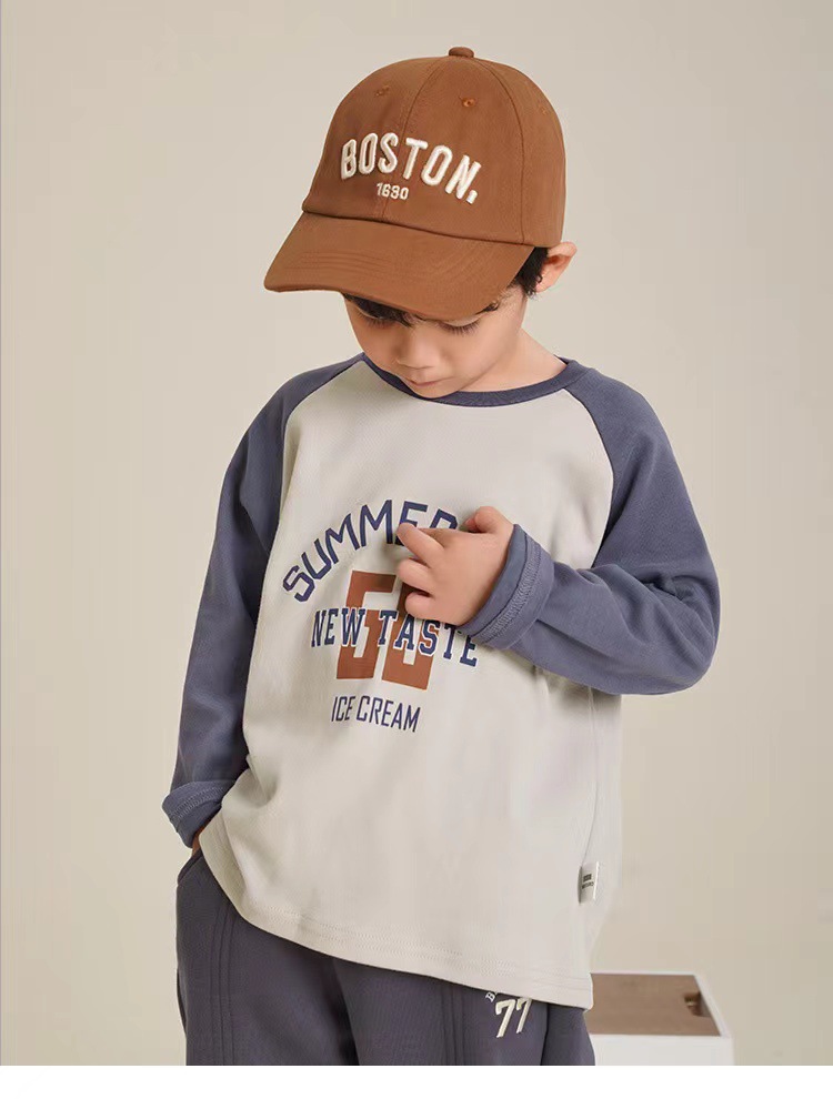 어린이 한국식 인쇄 라글란 티셔츠 소년 봄과 가을 올 매치 라운드 넥 긴팔 중첩 어린이 7A 항균베이스 탑스토어 가기