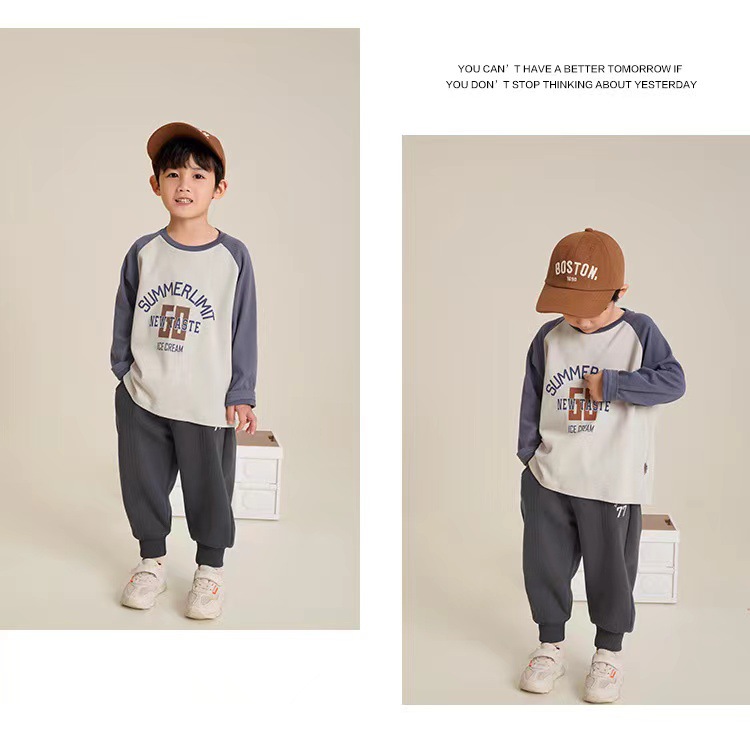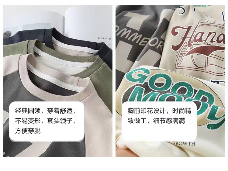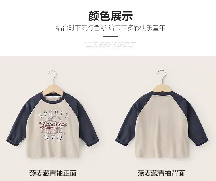 어린이 한국식 인쇄 라글란 티셔츠 소년 봄과 가을 올 매치 라운드 넥 긴팔 중첩 어린이 7A 항균베이스 탑