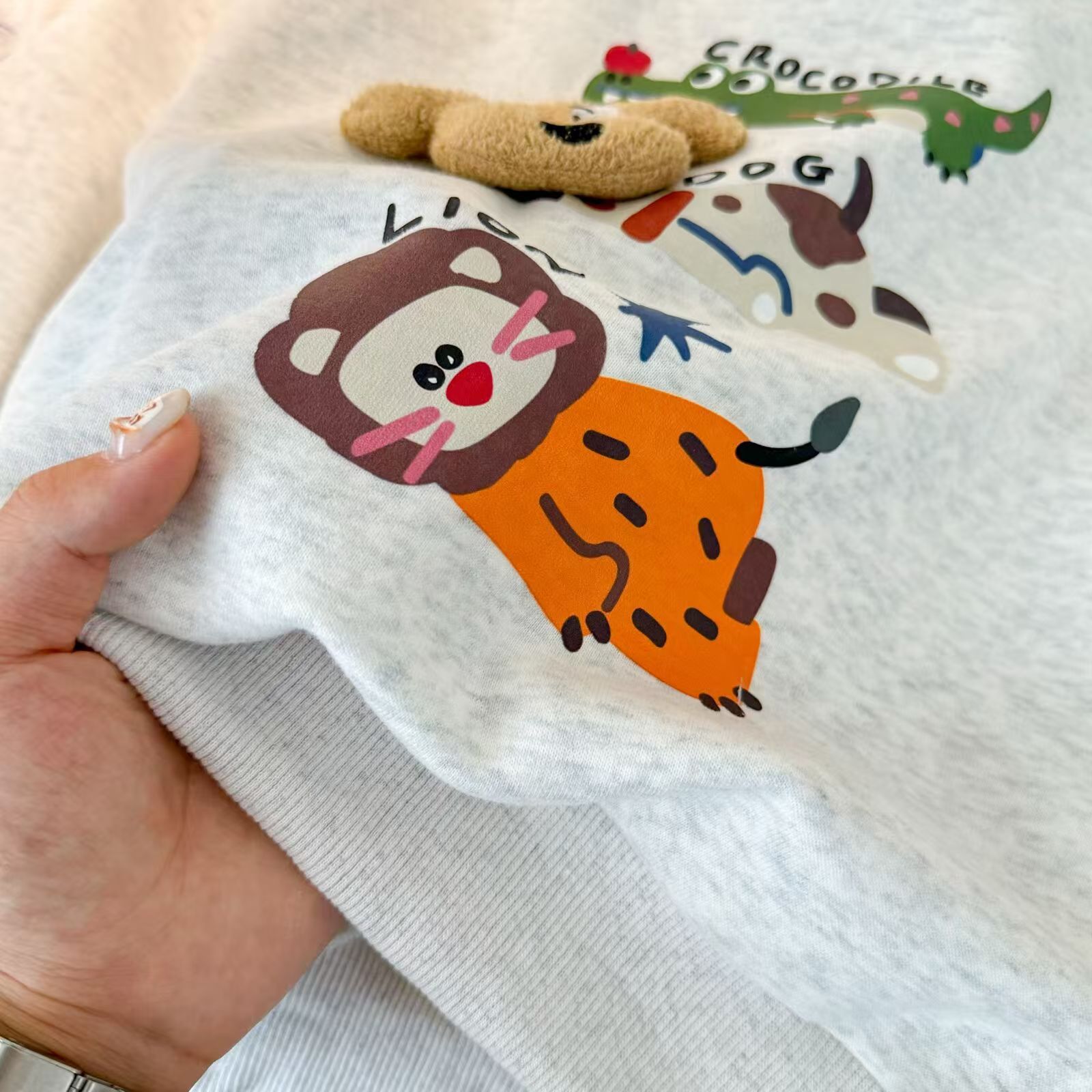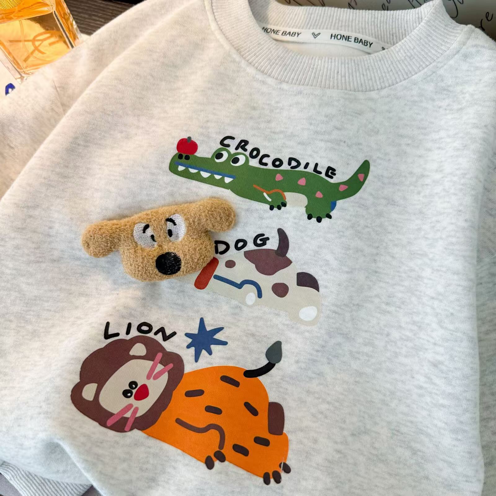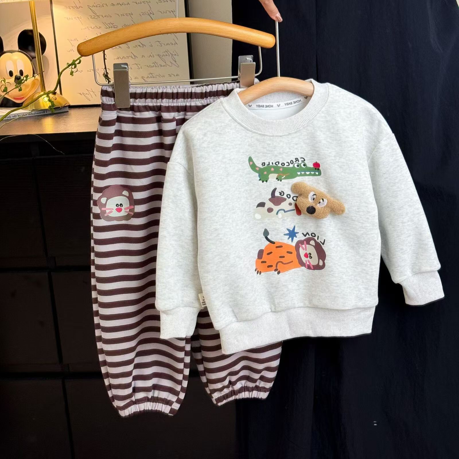 2025 입체 인형 라운드넥 스트라이프 바지 어린이 봄 가을 세트 남녀 아동 만화 스웨트셔츠 아동복 중국풍스토어 가기