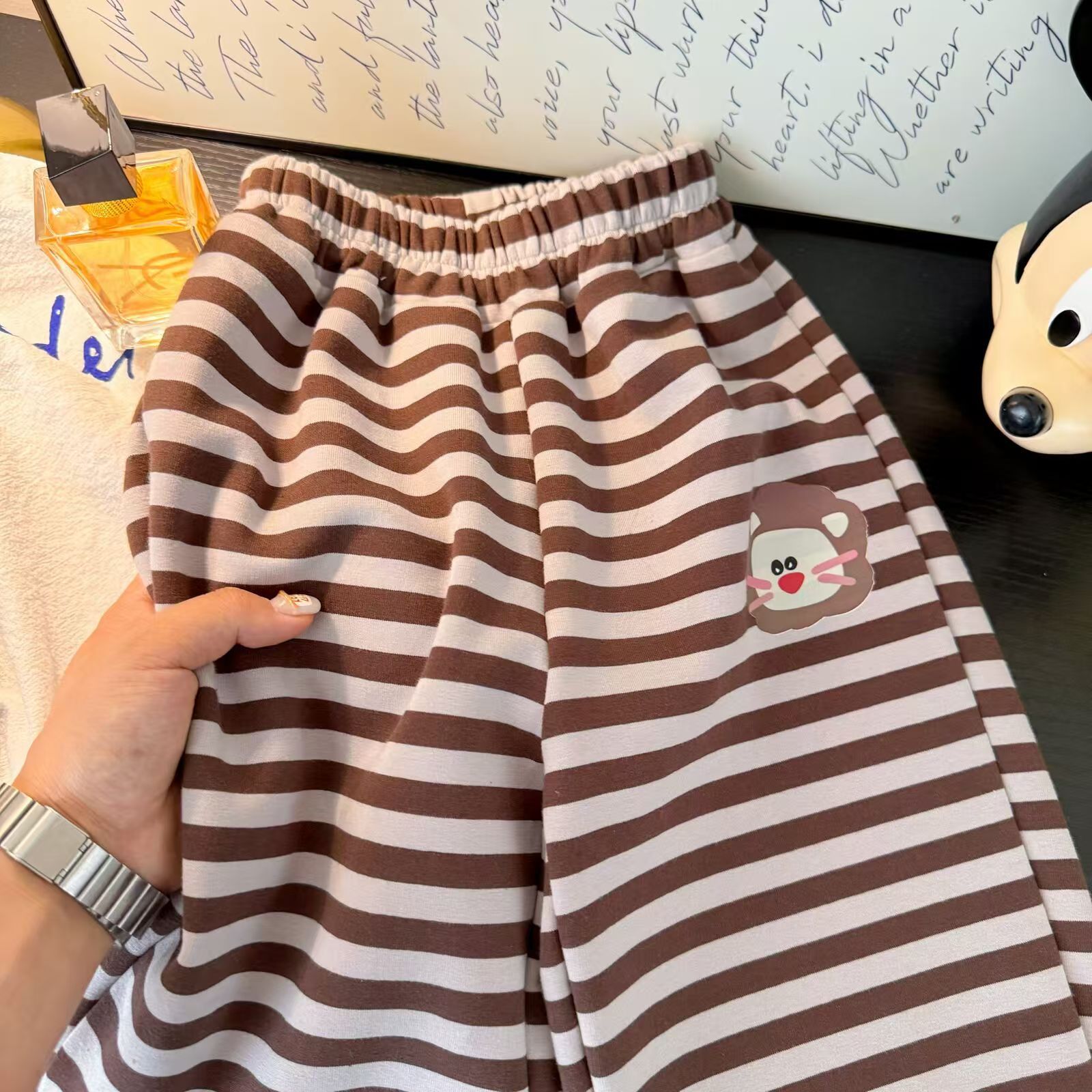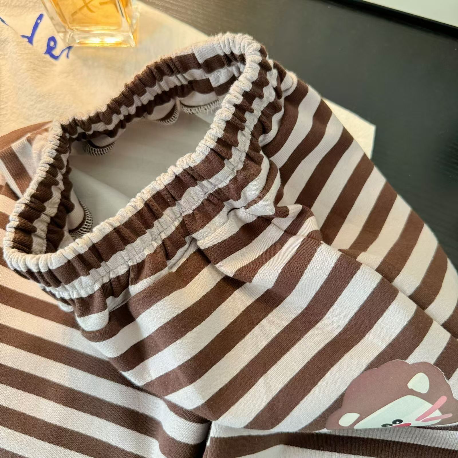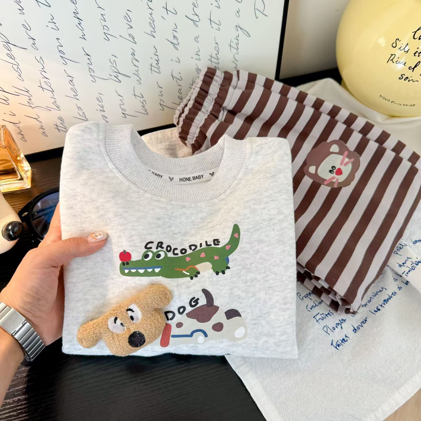 2025 입체 인형 라운드넥 스트라이프 바지 어린이 봄 가을 세트 남녀 아동 만화 스웨트셔츠 아동복 중국풍