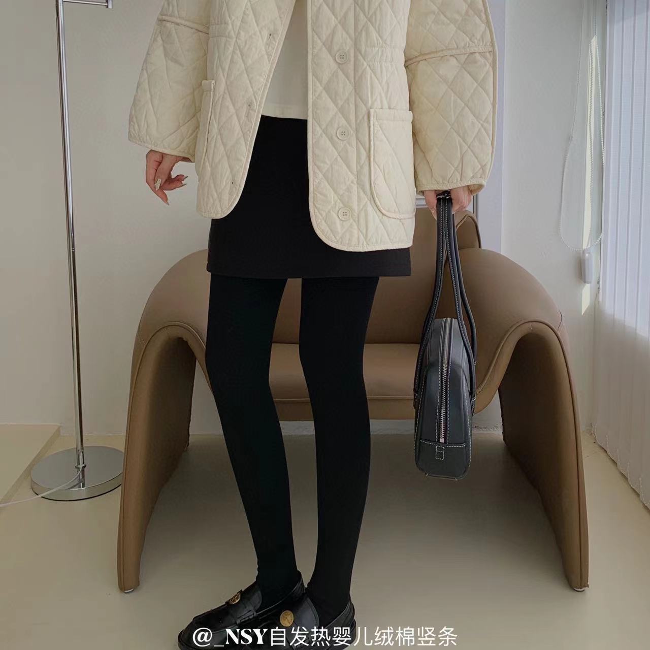 NSY302 자체 난방 아기 벨벳 코튼 수직 스트립 가을과 겨울 바깥 쪽 기모 바닥 양말 발 얇은 다리 팬티 스타킹 세로 줄무늬스토어 가기
