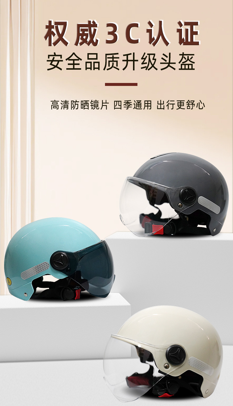 3C 인증 전기 자전거 헬멧 남녀공용 자외선 차단 반헬멧 배터리 오토바이 낙상 방지 안전모 라이딩 보호