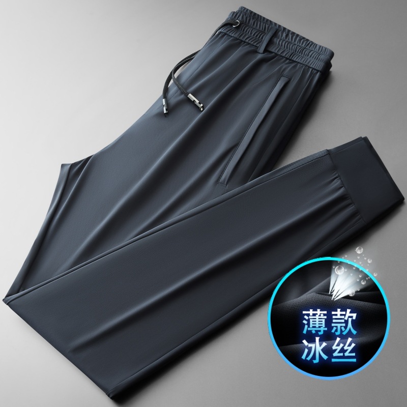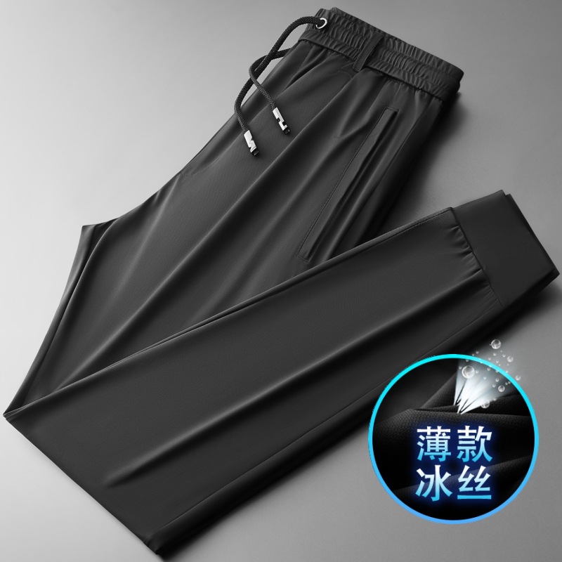 고품질 남성용 스트레이트 캐주얼 팬츠, 여름용 얇은 바지, 남성용 스포츠 팬츠, 루즈핏 속건 아이스 실크, 큰 사이즈 남성 바지스토어 가기