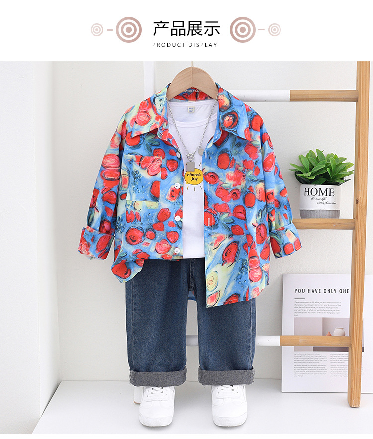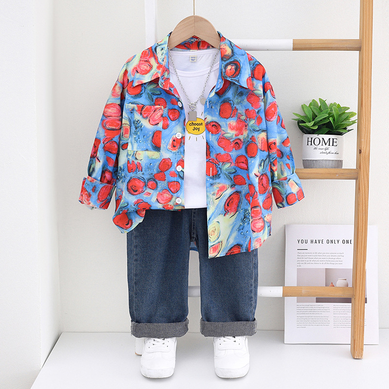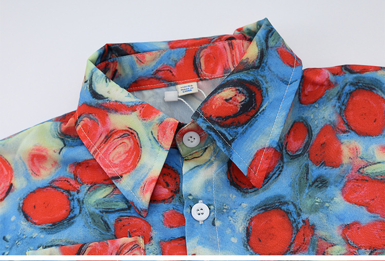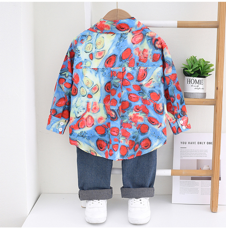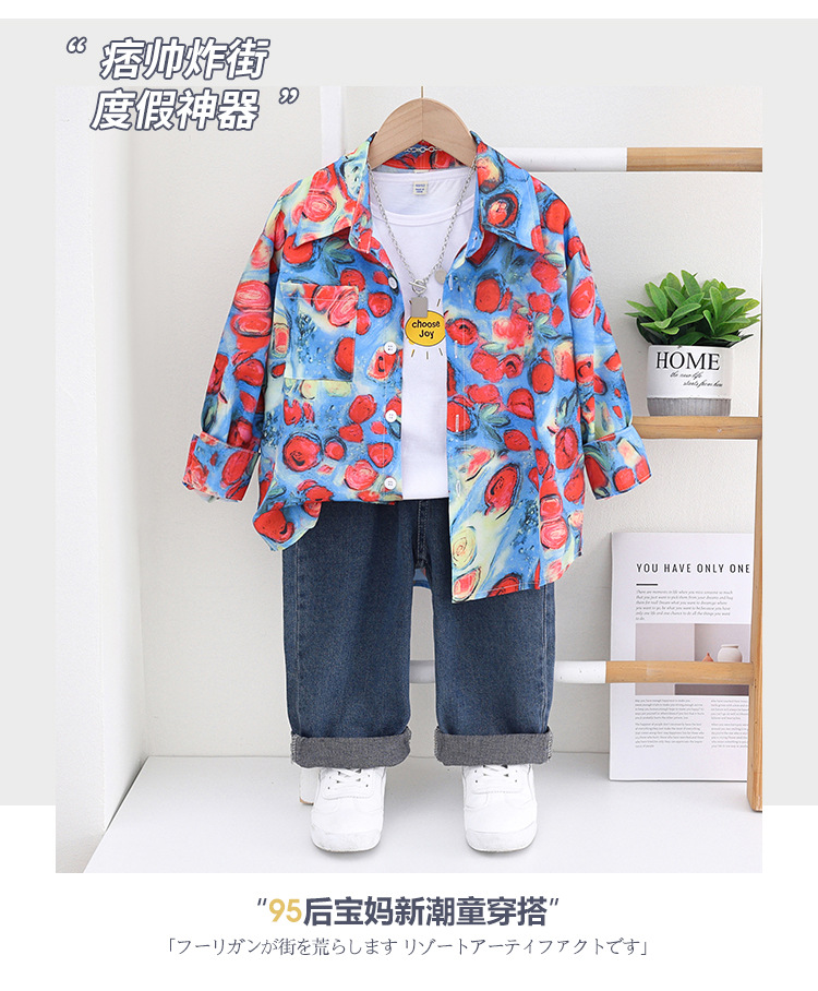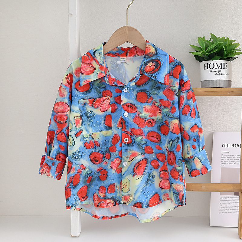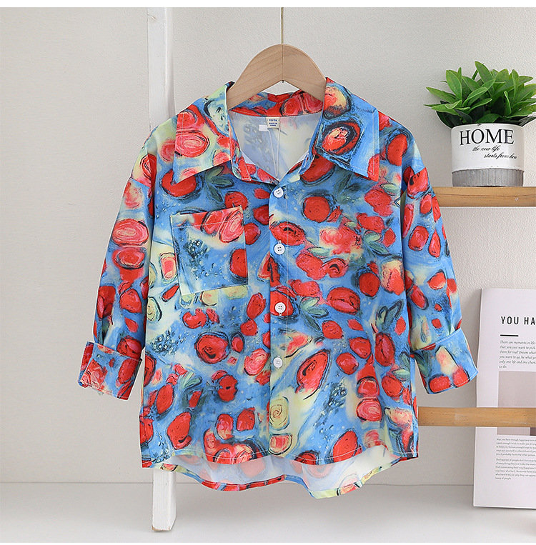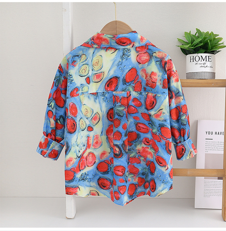 홍콩 스타일 빈티지 아동복 인쇄 2024 년 새 셔츠 봄과 가을 긴 소매 태양 보호 코트 낙서 셔츠스토어 가기