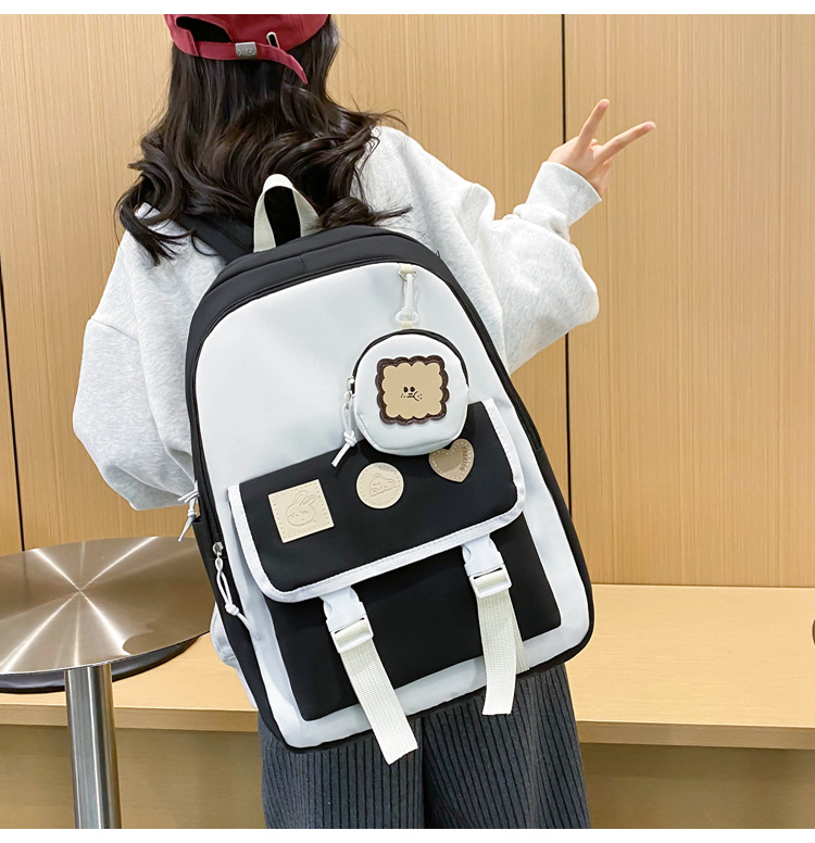 2024 고등학생 및 대학생을위한 새로운 4 피스 스쿨 백 배낭 초등 학생을위한 한국식 방수 나일론 천 배낭스토어 가기