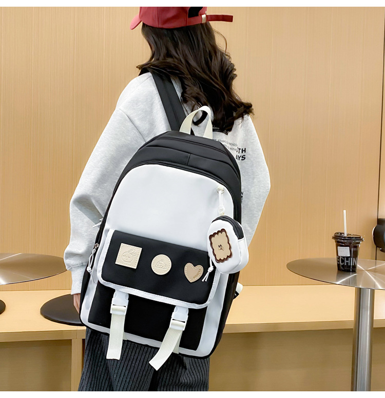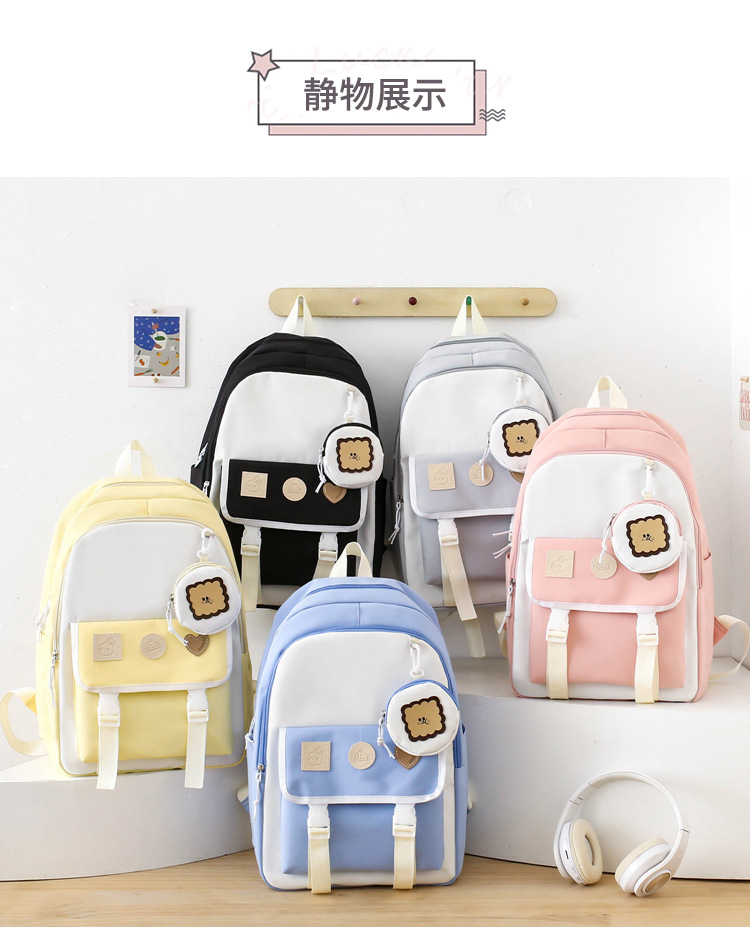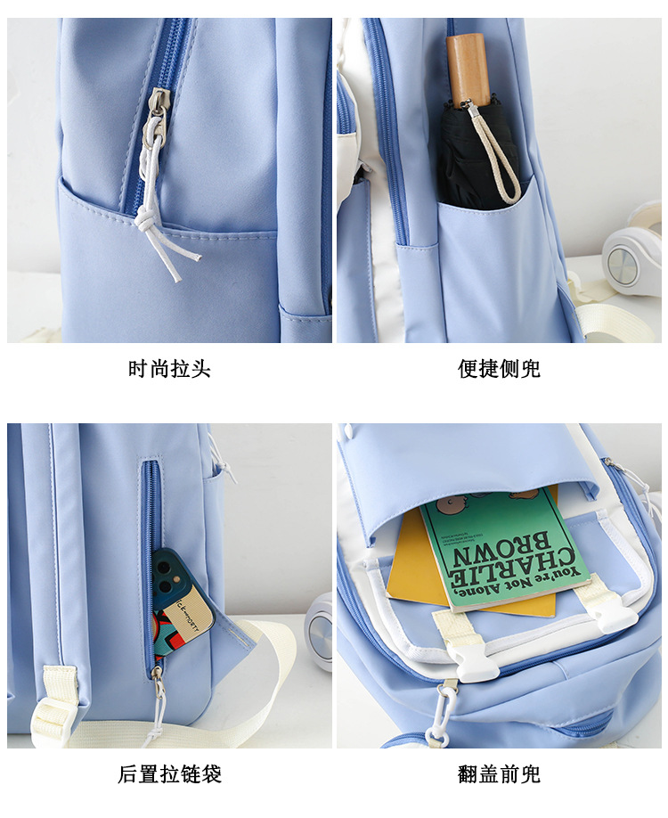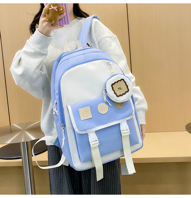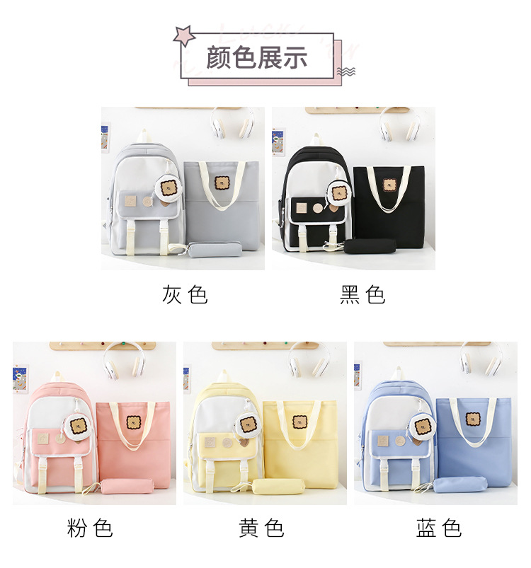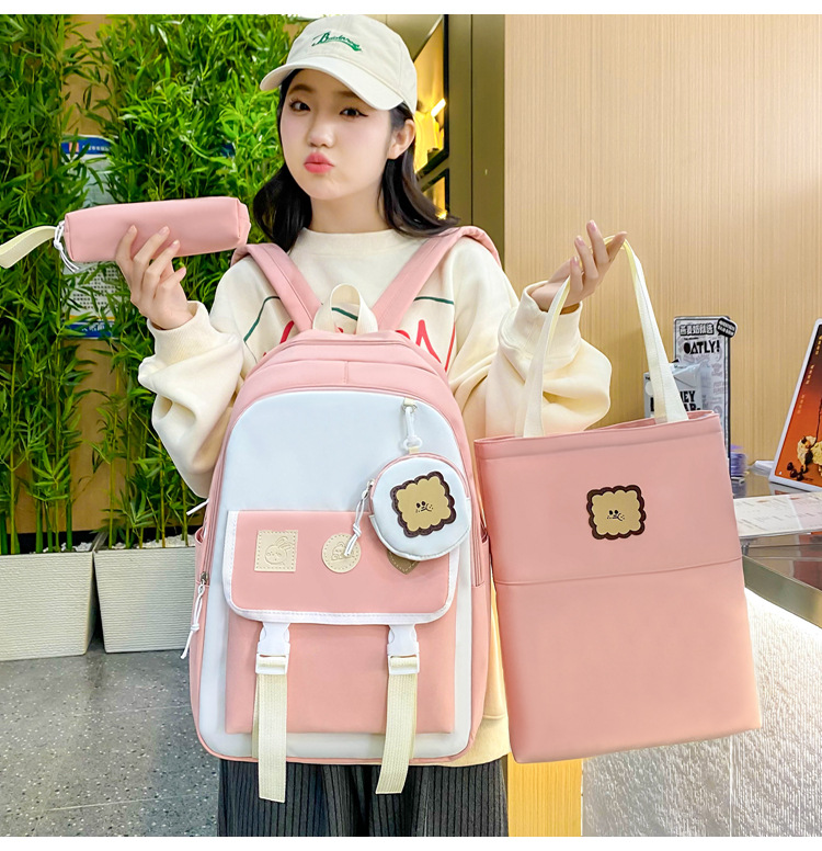 2024 고등학생 및 대학생을위한 새로운 4 피스 스쿨 백 배낭 초등 학생을위한 한국식 방수 나일론 천 배낭