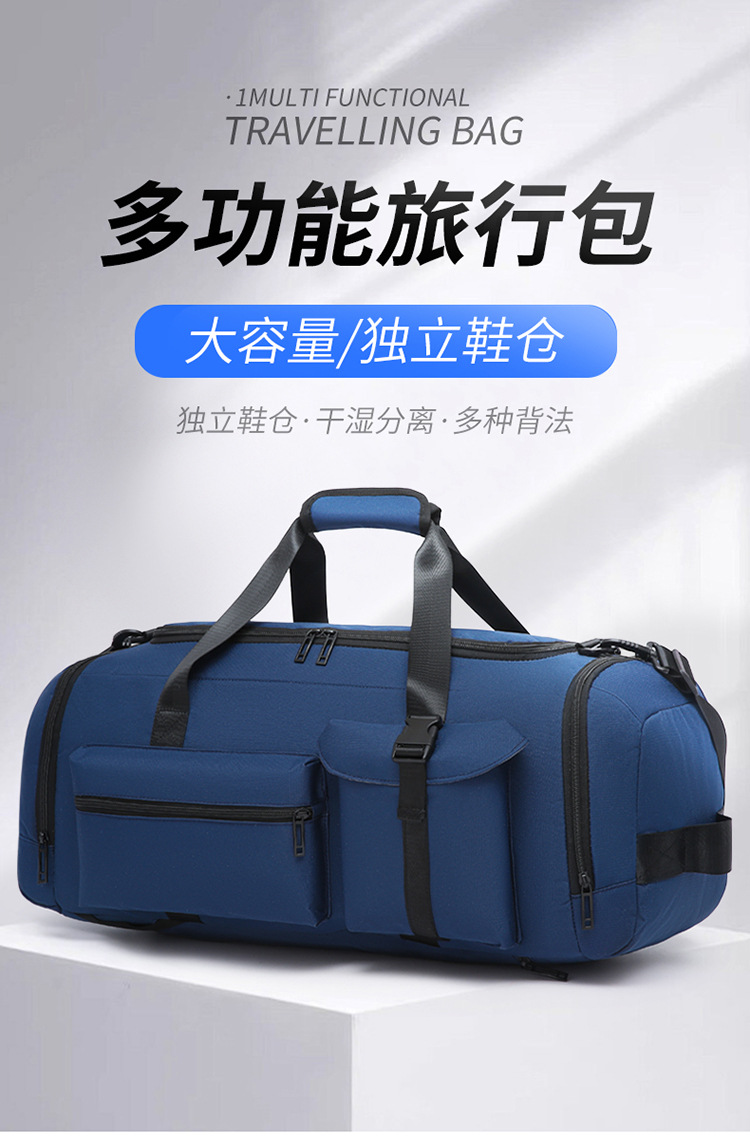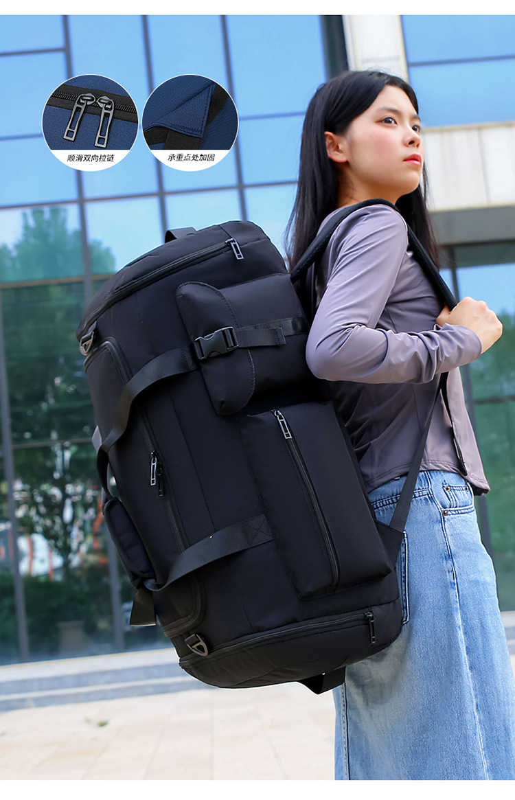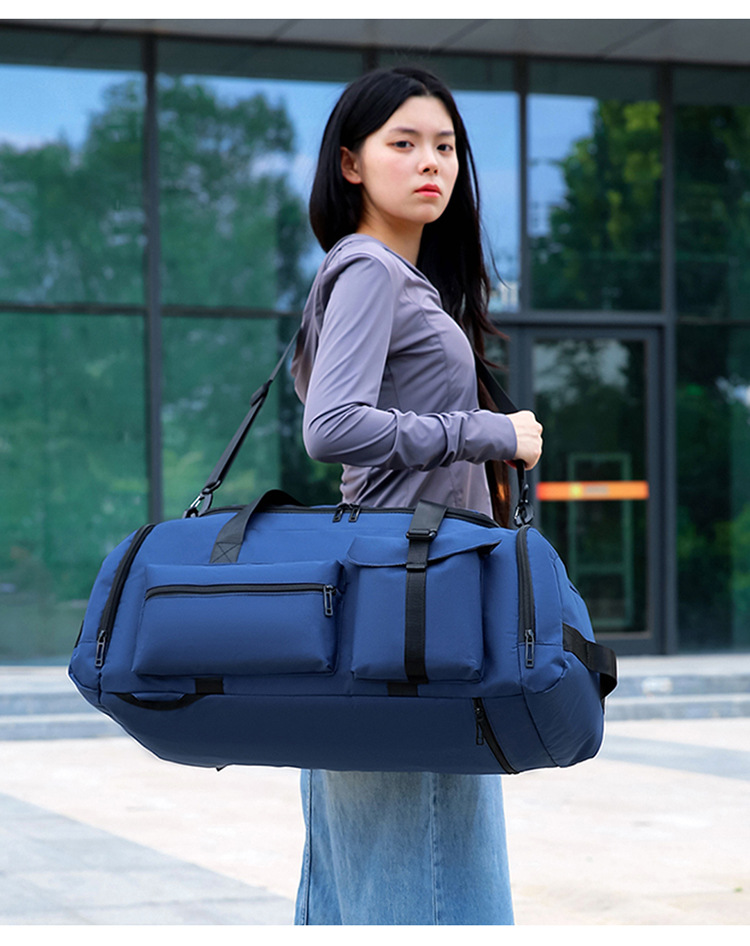 여행용 고급 핸드백 겸 크로스백, 양쪽으로 착용 가능, 방수 옥스포드 천, 독립 신발 수납공간 포함 여행 가방