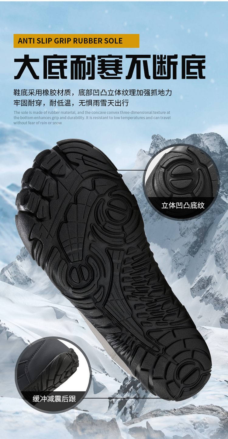 야외 5 손가락 스노우 부츠 2024 국경 가을 겨울 남녀 커플 방수 면화 신발 기모 두꺼운 등산 코튼 부츠