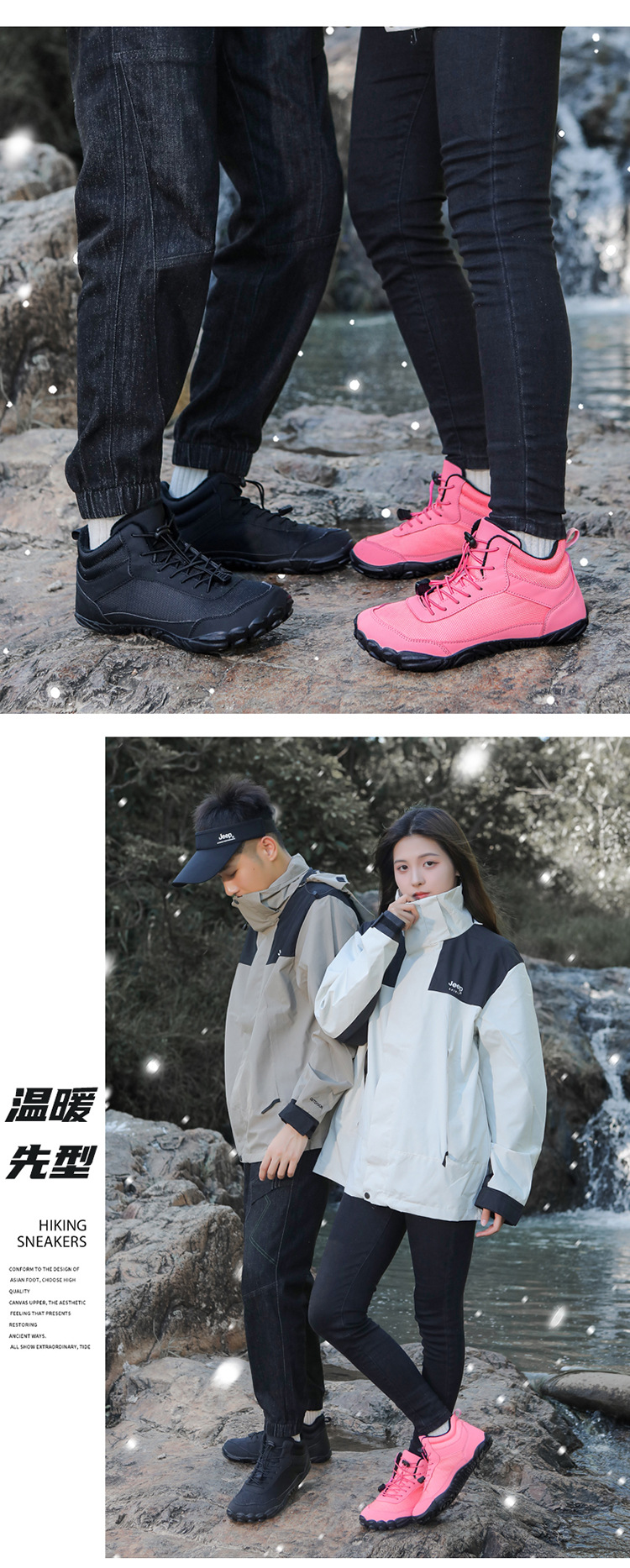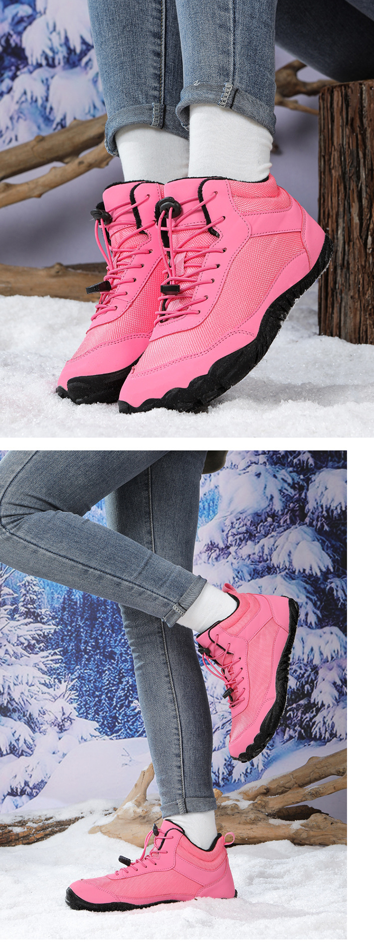 야외 5 손가락 스노우 부츠 2024 국경 가을 겨울 남녀 커플 방수 면화 신발 기모 두꺼운 등산 코튼 부츠스토어 가기