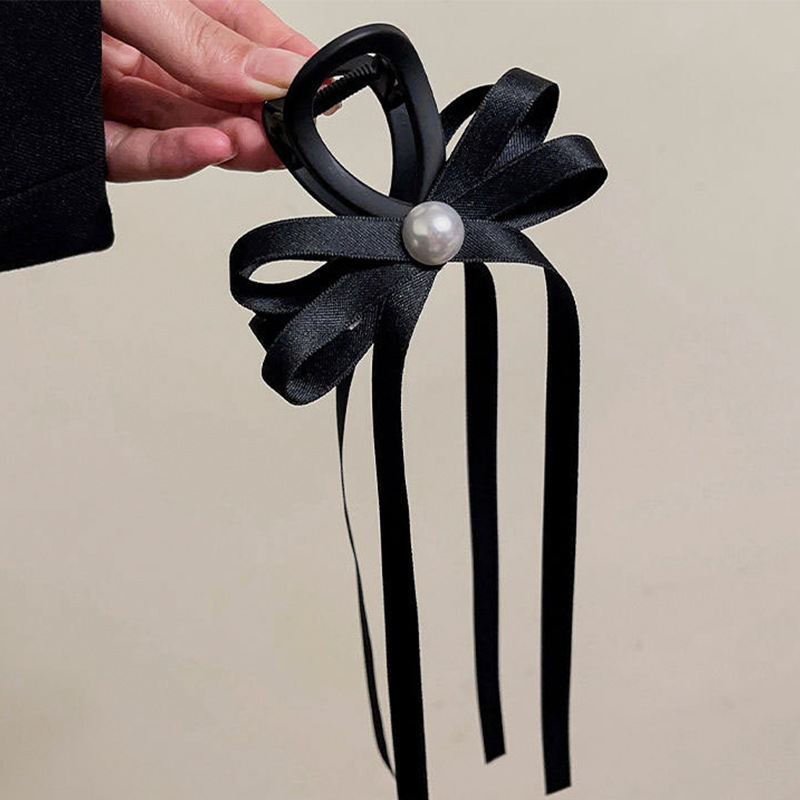 새로운 블랙 리본 활 그랩 클립 슈퍼 요정 머리 머리 상어 클립 절묘한 발레 스타일 헤어핀 헤드웨어스토어 가기