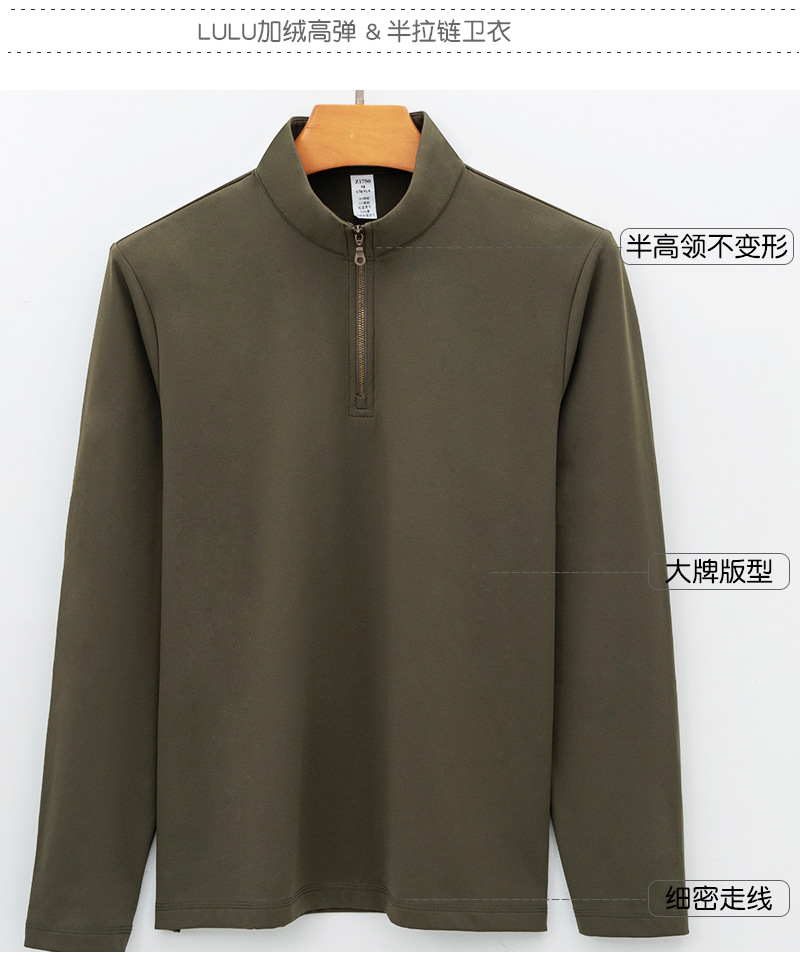 하이 엔드 룰루 스웨트 셔츠 긴 소매 브러시 브로케이드 암모니아 남성 티셔츠 따뜻한 높은 탄성 스포츠 하프 지퍼 스웨터 남성