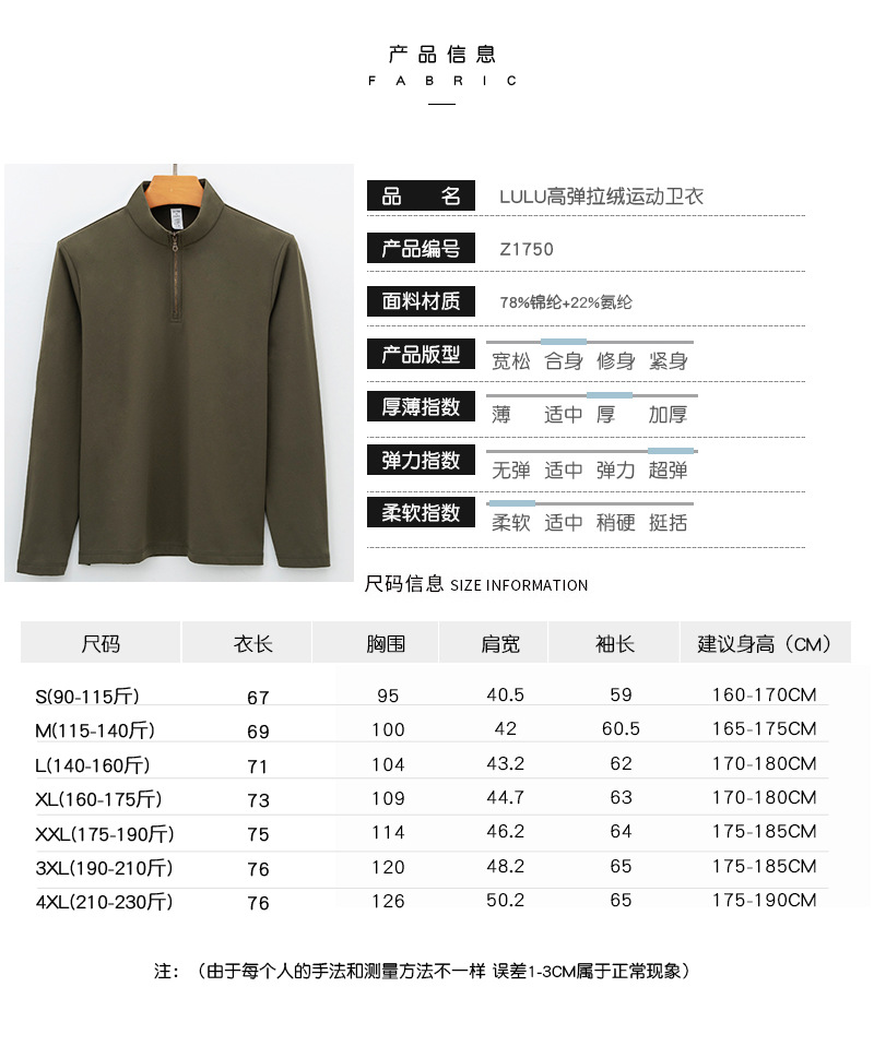 하이 엔드 룰루 스웨트 셔츠 긴 소매 브러시 브로케이드 암모니아 남성 티셔츠 따뜻한 높은 탄성 스포츠 하프 지퍼 스웨터 남성스토어 가기