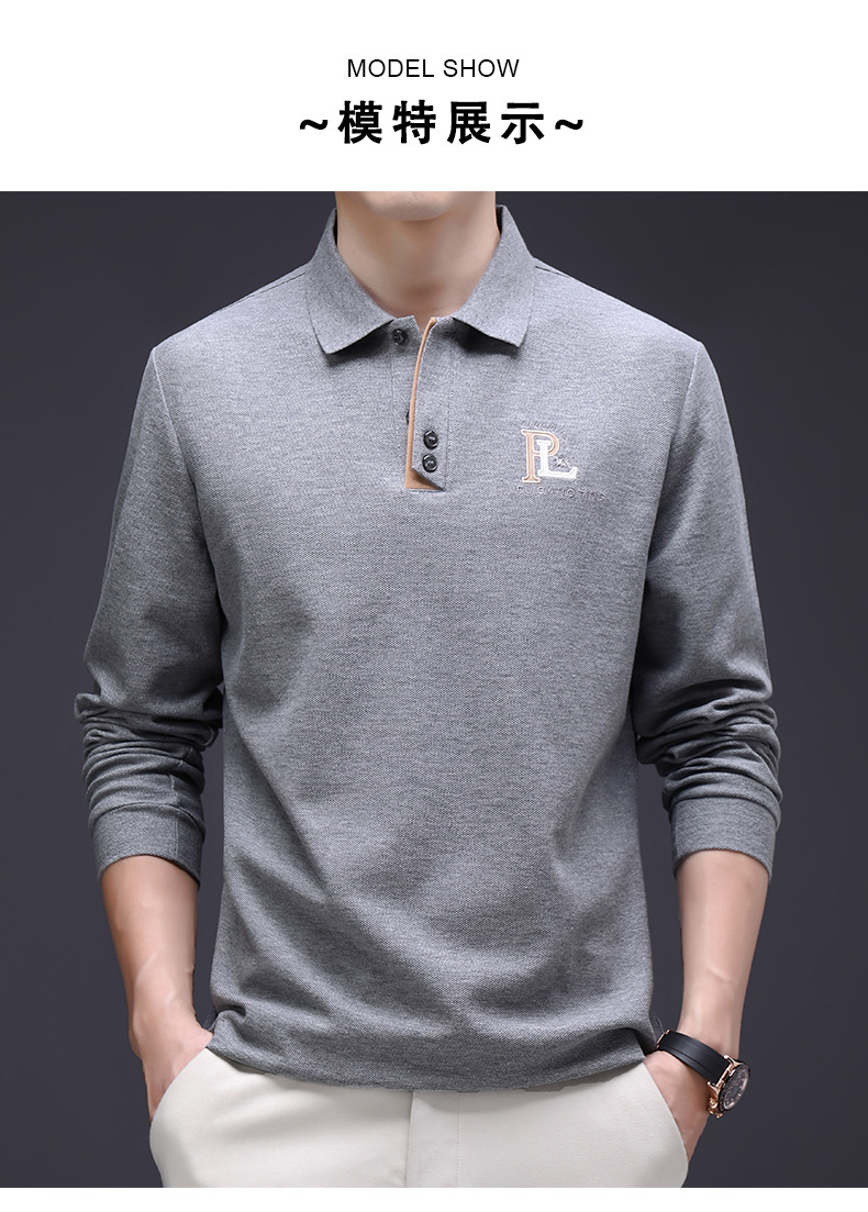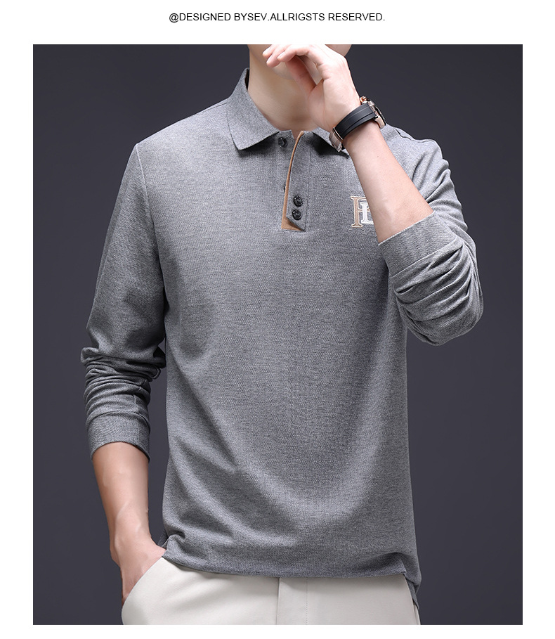 하이 퀄리티 남성 봄과 가을 컬러 매칭 더블 라켓 긴 소매 중년 및 젊은 비즈니스 캐주얼 자수 패션 올 매치 폴로 셔츠스토어 가기