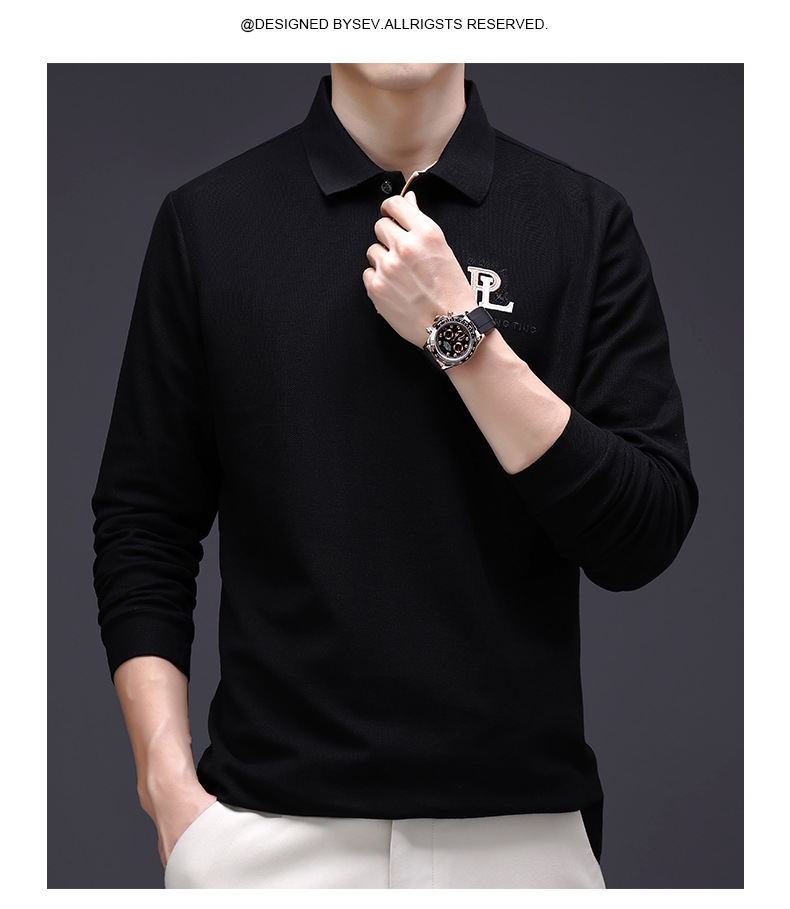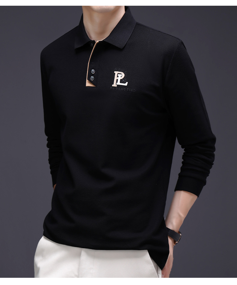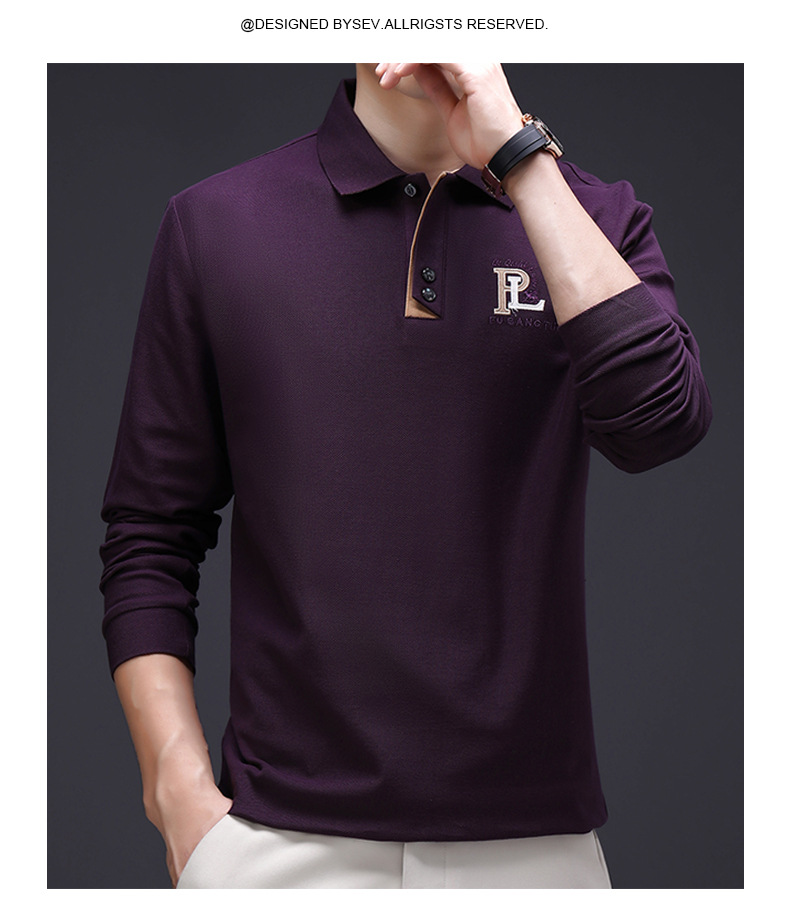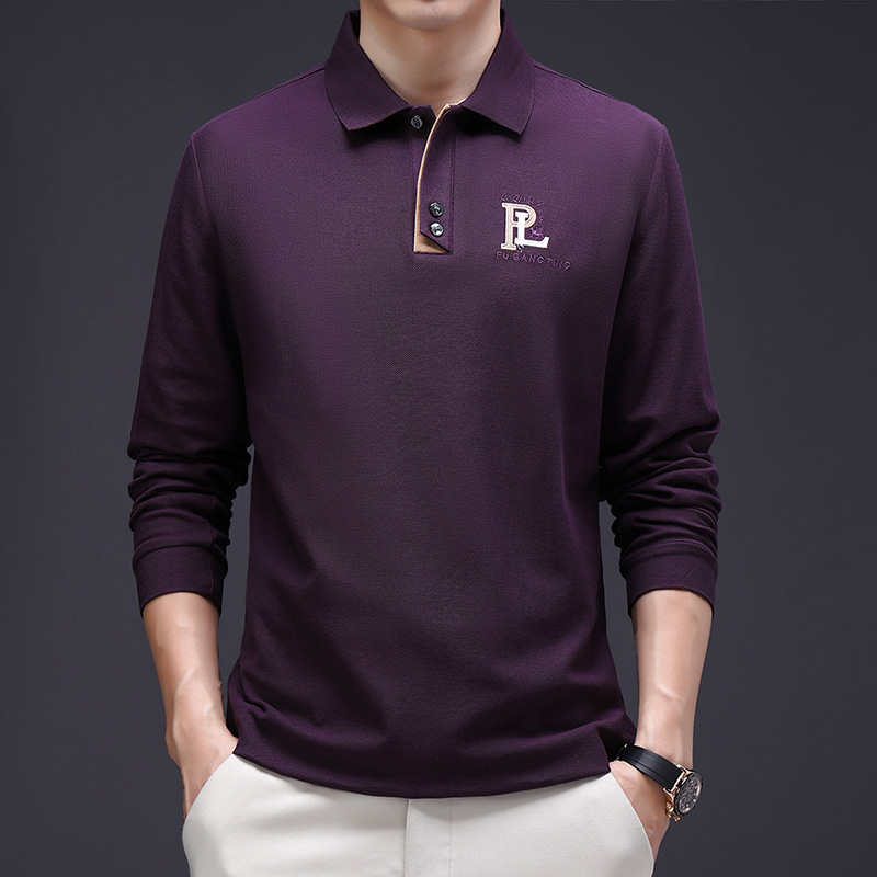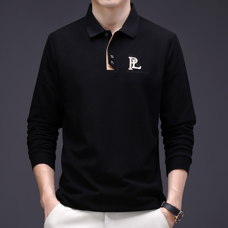 하이 퀄리티 남성 봄과 가을 컬러 매칭 더블 라켓 긴 소매 중년 및 젊은 비즈니스 캐주얼 자수 패션 올 매치 폴로 셔츠