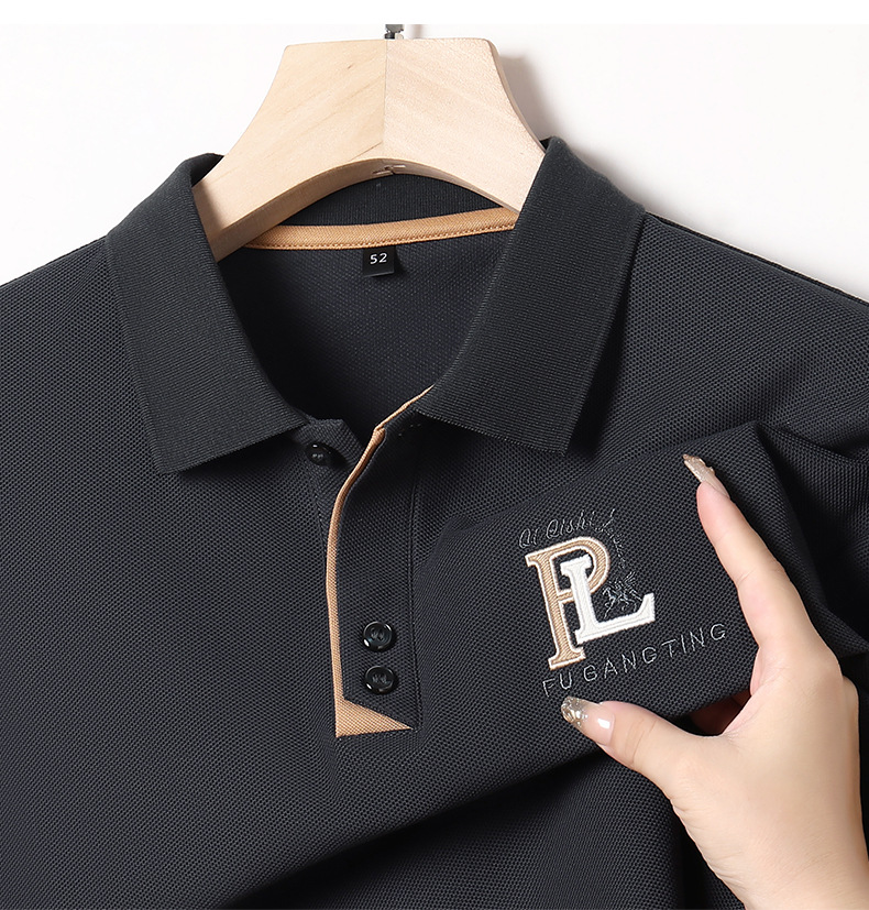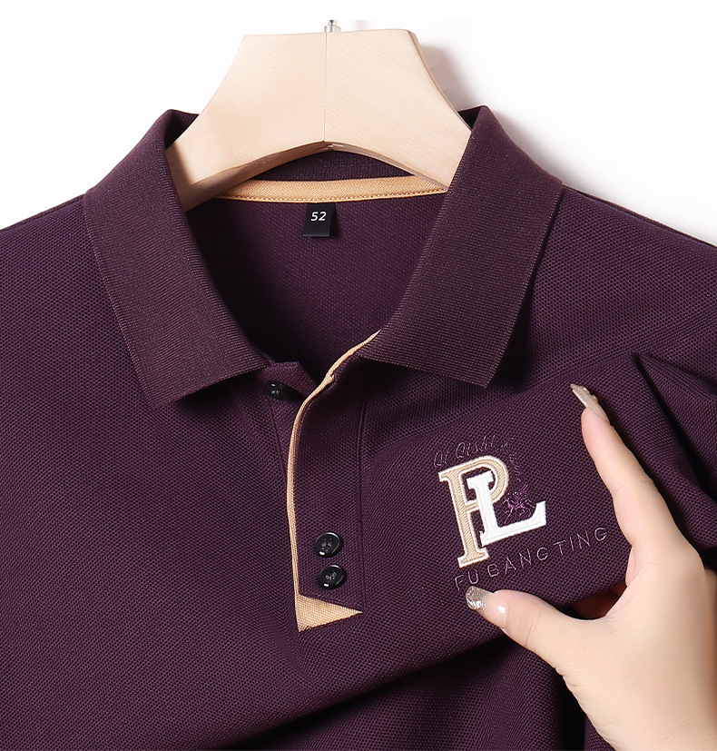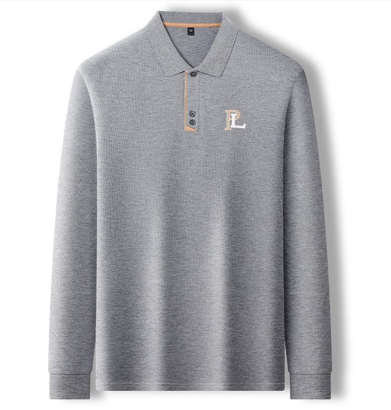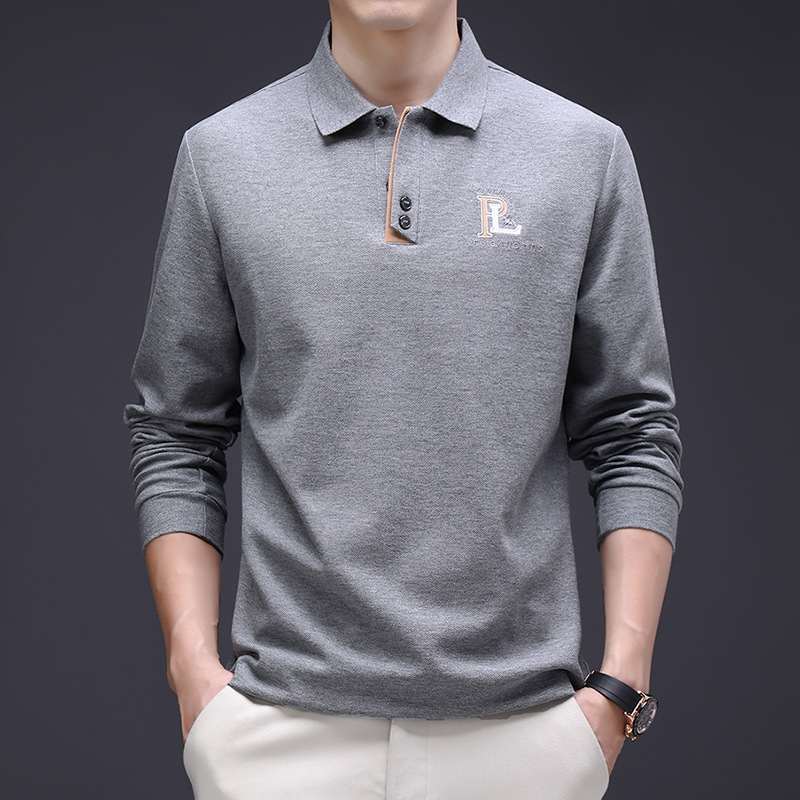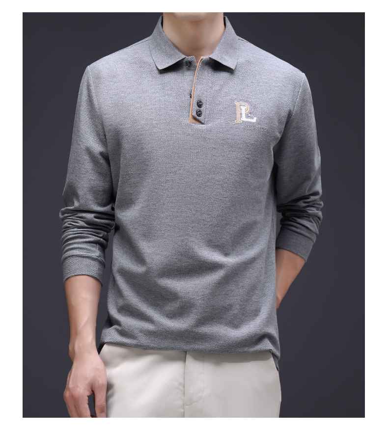하이 퀄리티 남성 봄과 가을 컬러 매칭 더블 라켓 긴 소매 중년 및 젊은 비즈니스 캐주얼 자수 패션 올 매치 폴로 셔츠