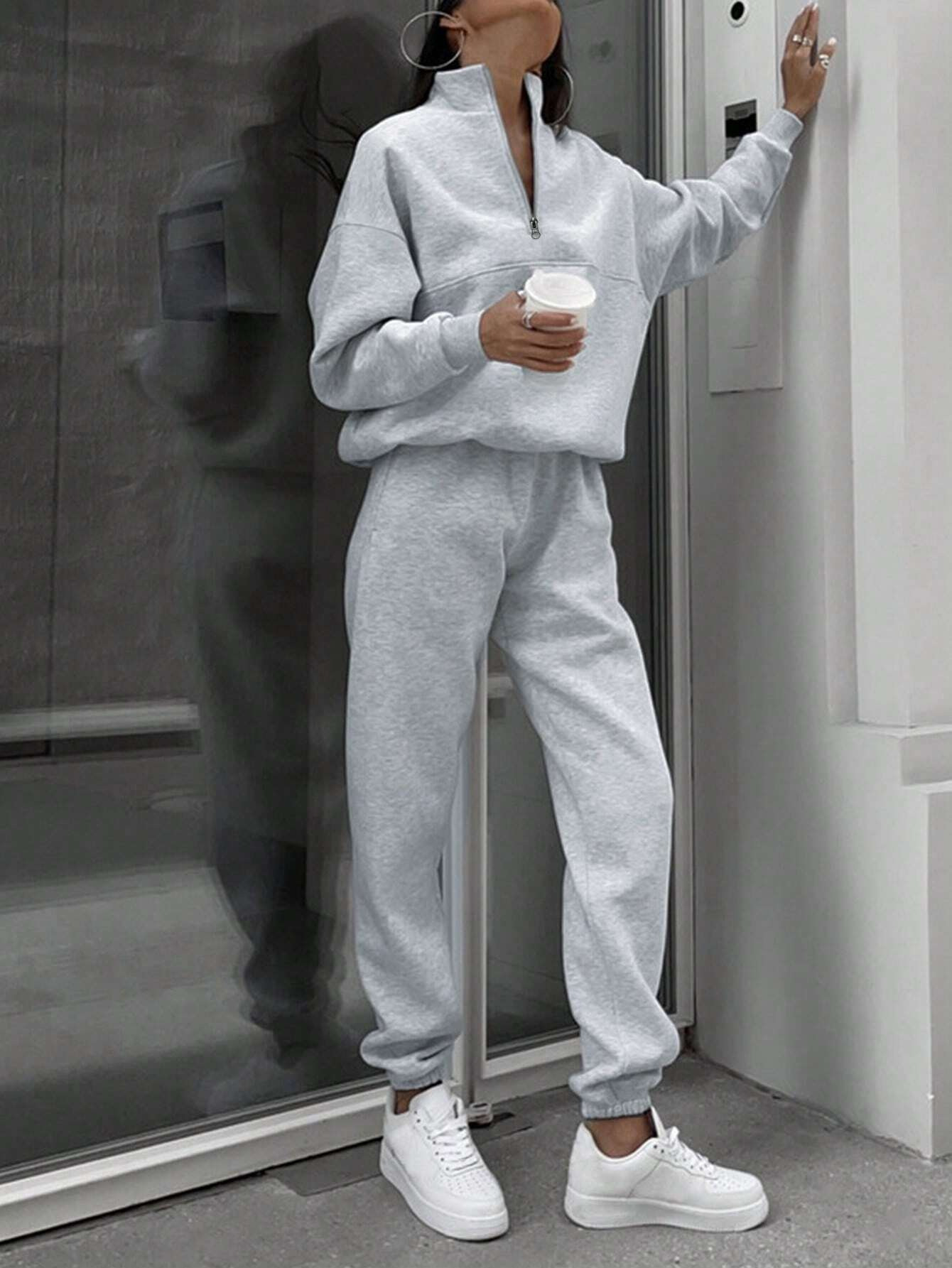 대외 무역 여성 의류 유럽 미국 피닉스 아마존 국경 가을과 겨울 새로운 패션 지퍼 옷깃 단색 캐주얼 투피스 세트스토어 가기