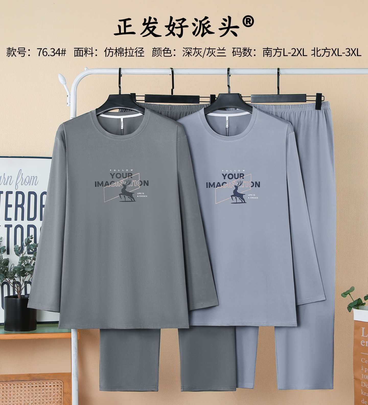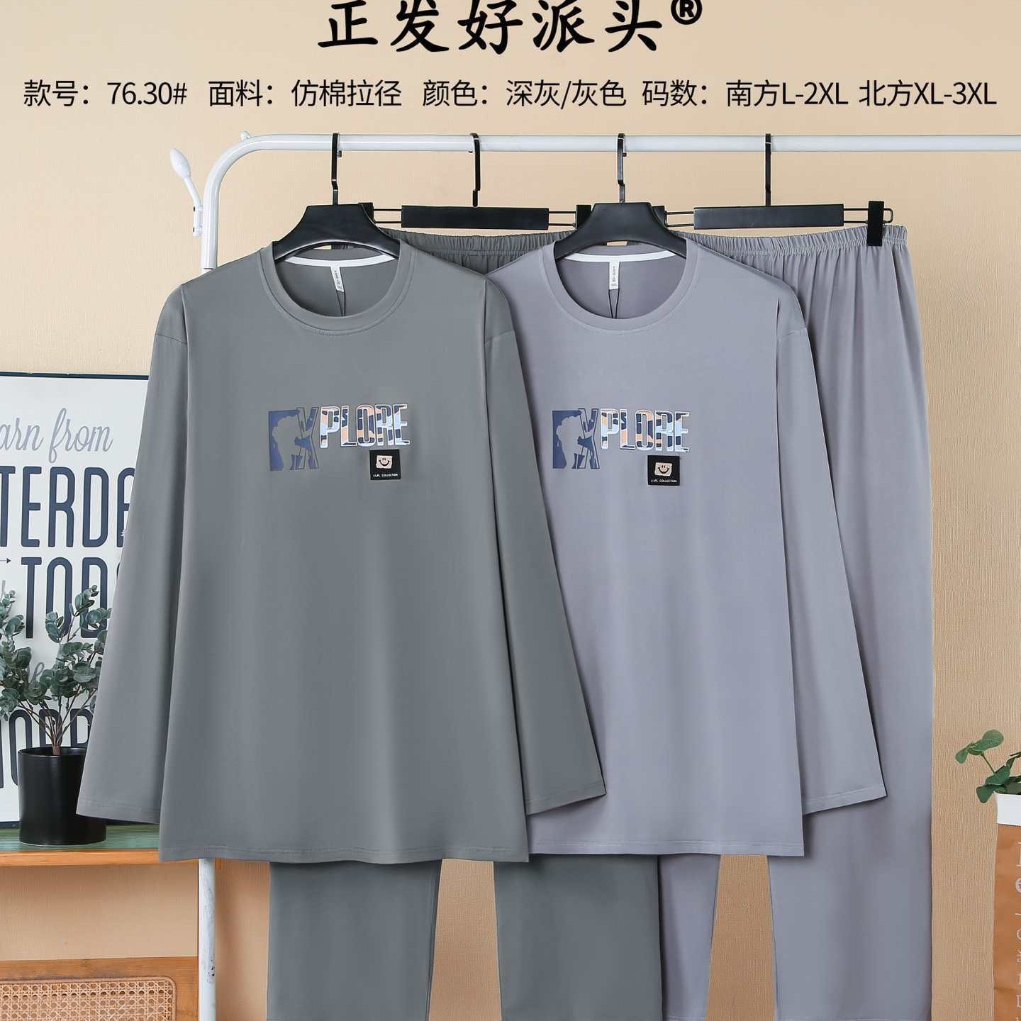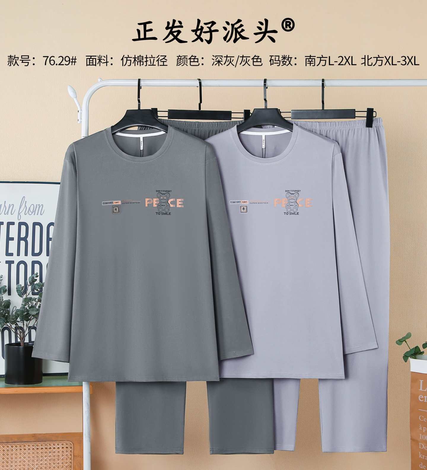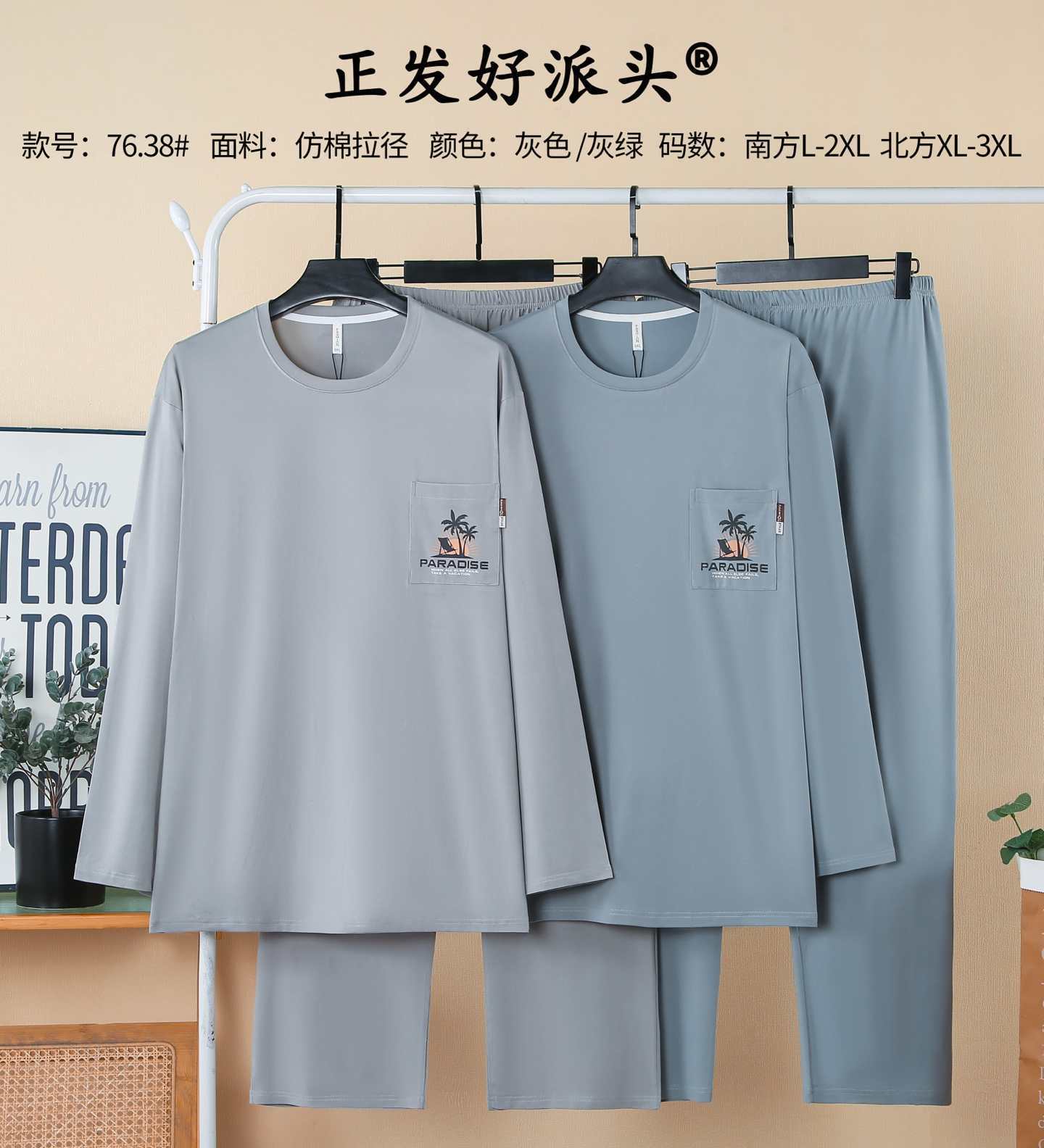 가을 2024 새로운 남성 풀오버 캐주얼 편안한 긴 소매 바지 세트 잠옷 모조 면 홈 옷스토어 가기
