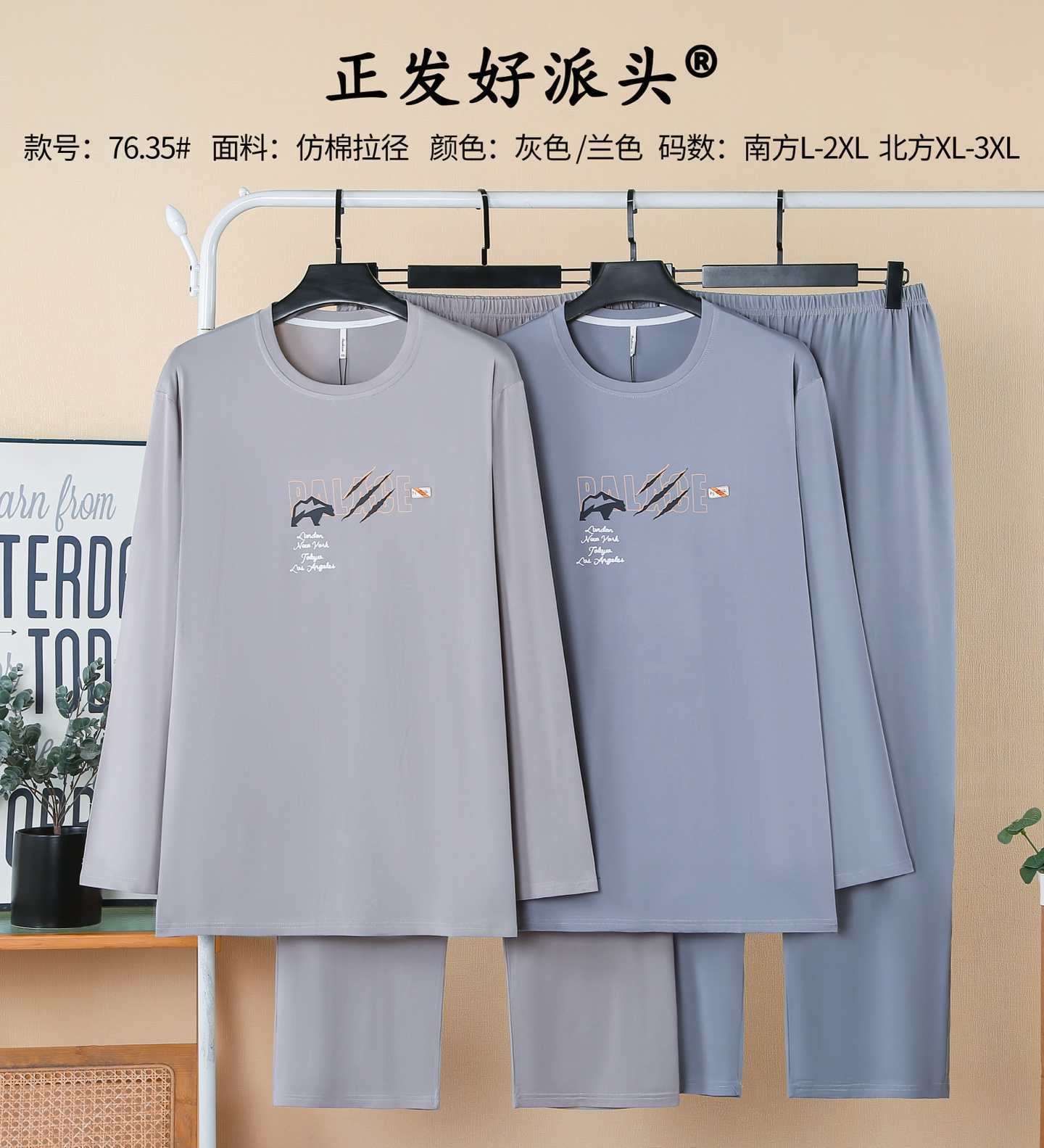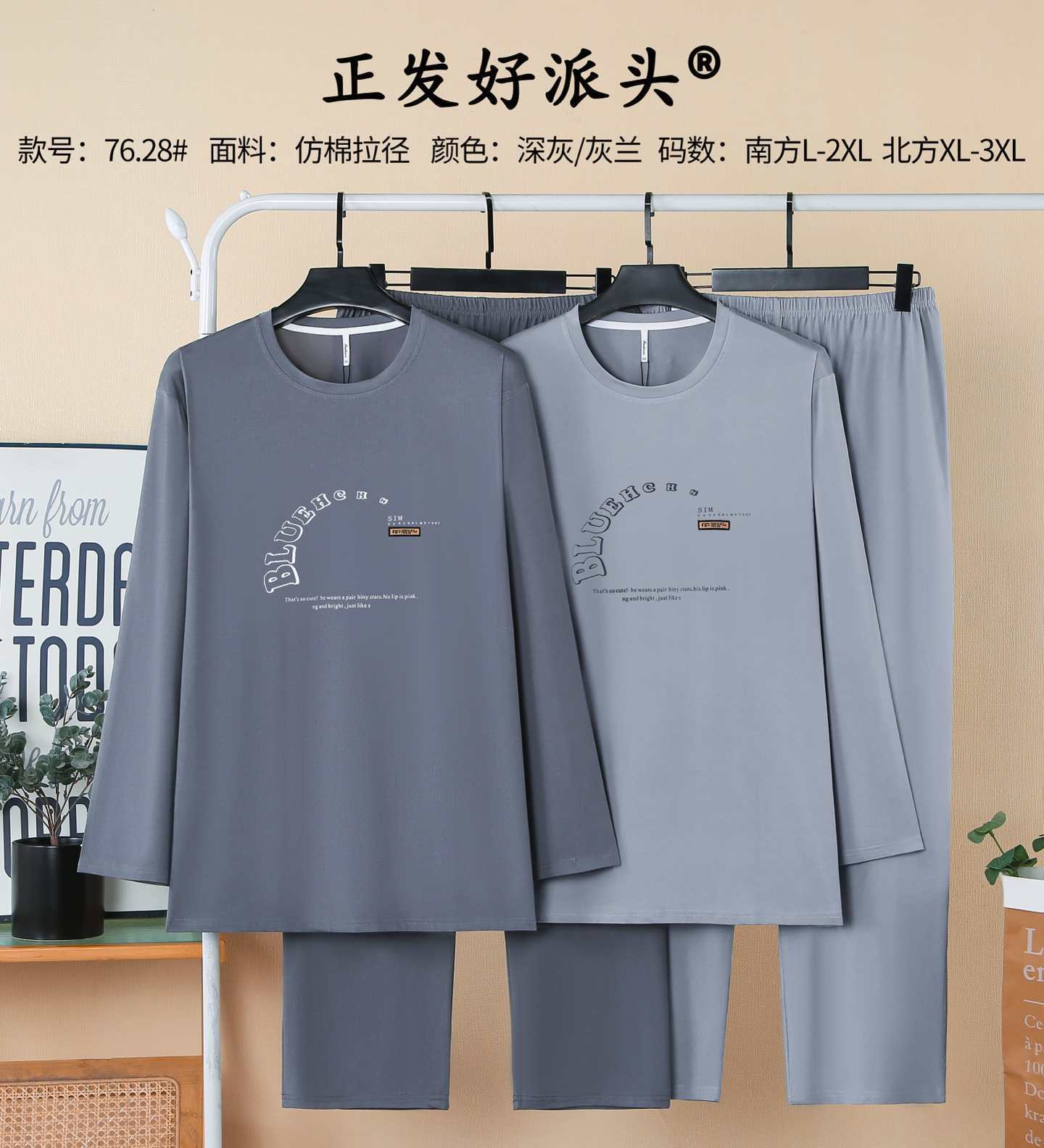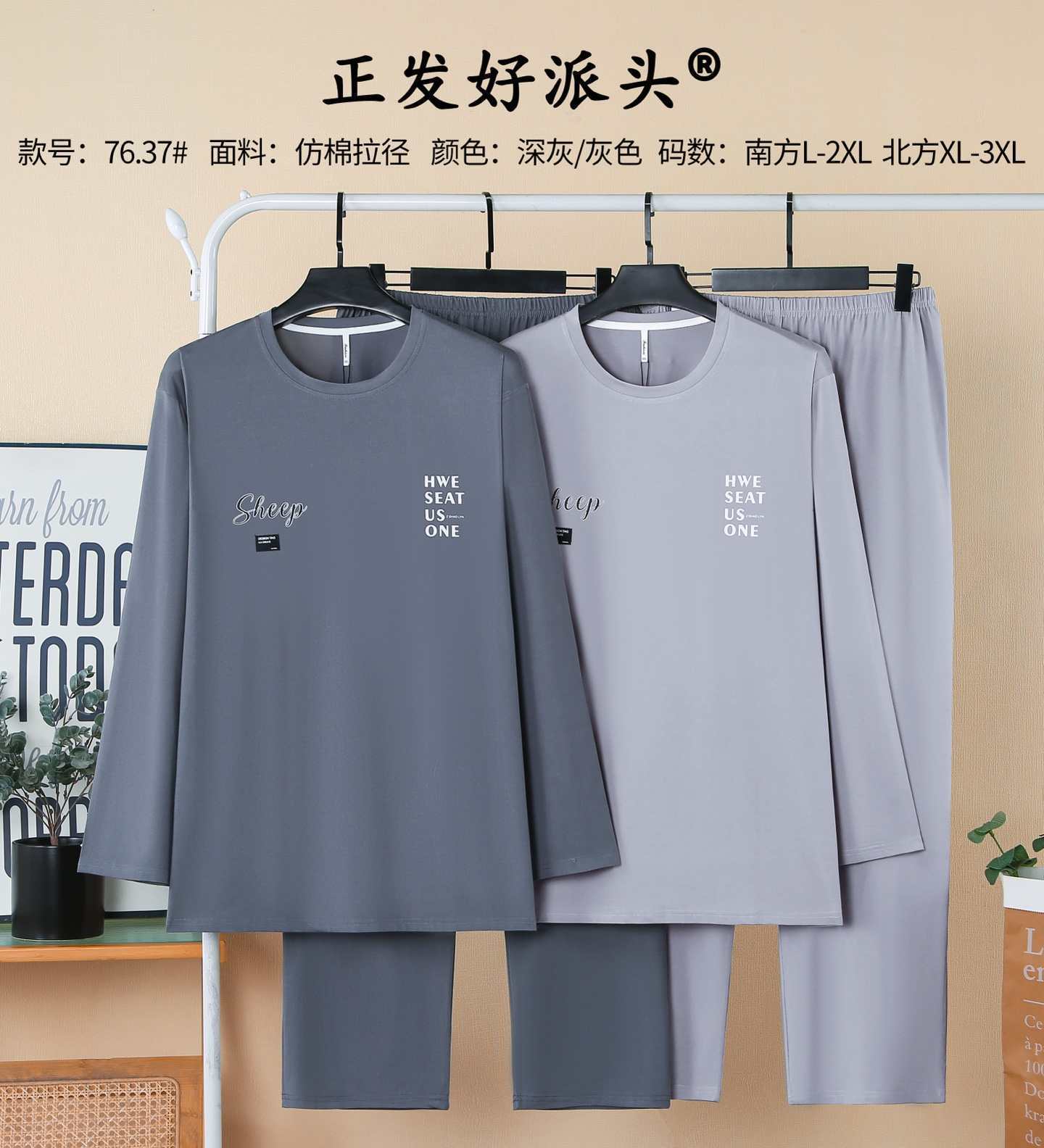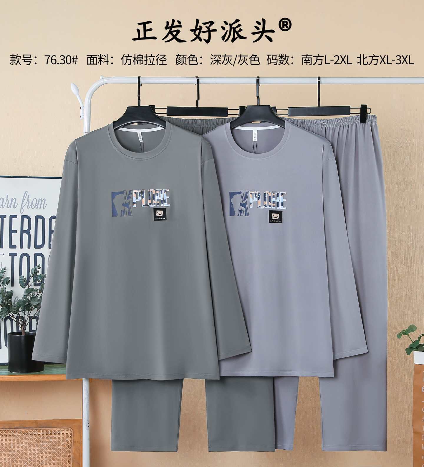 가을 2024 새로운 남성 풀오버 캐주얼 편안한 긴 소매 바지 세트 잠옷 모조 면 홈 옷스토어 가기