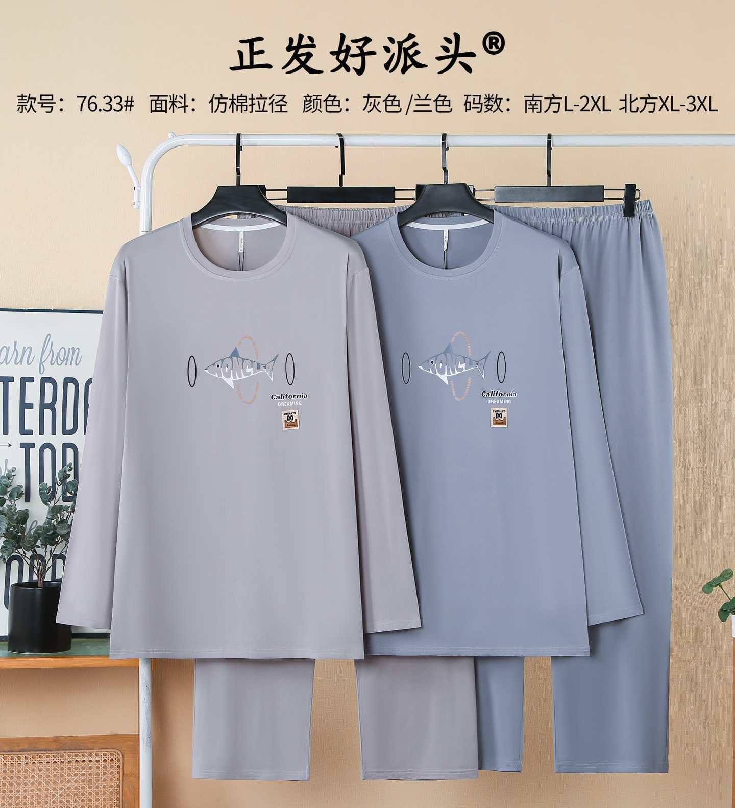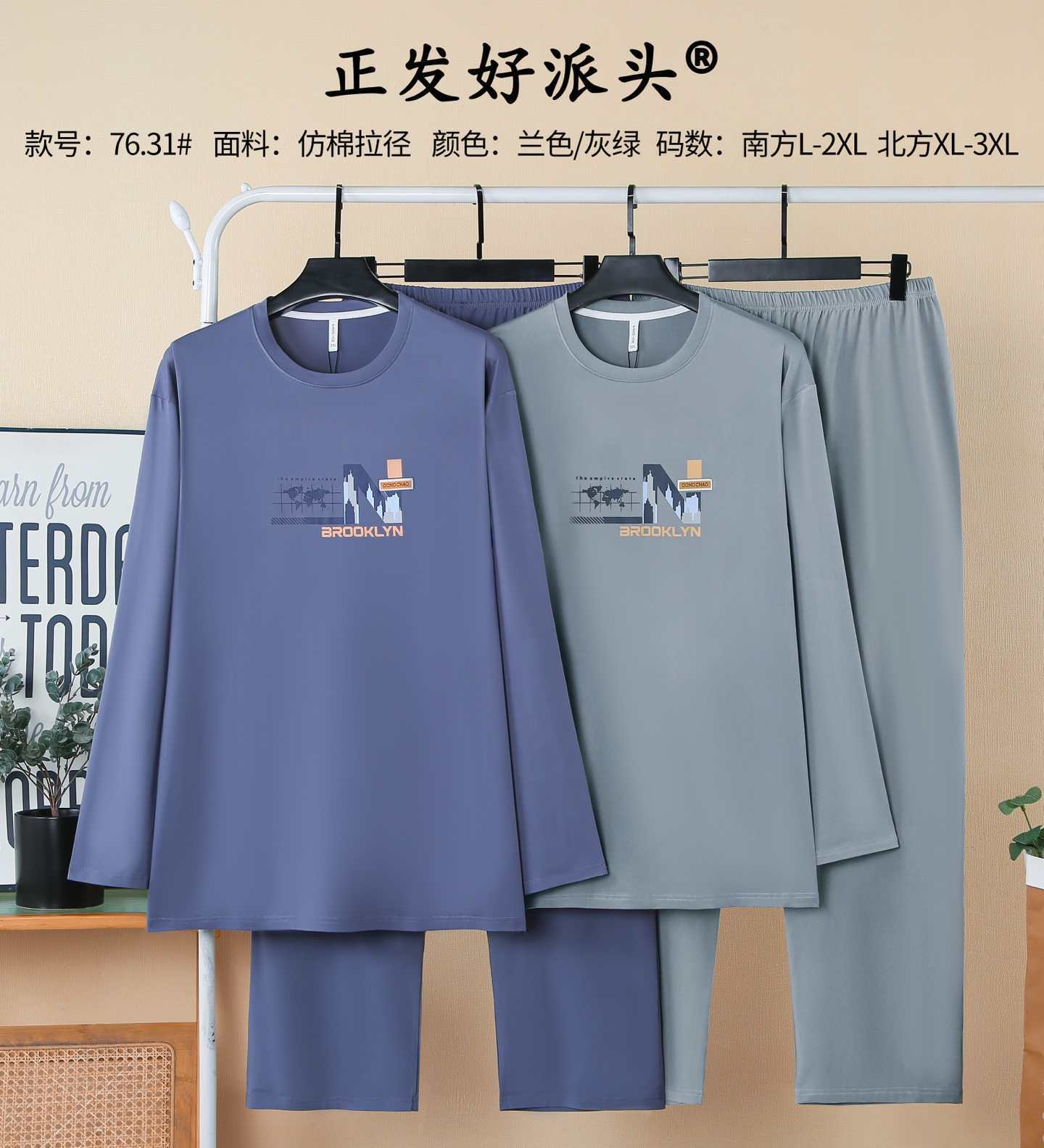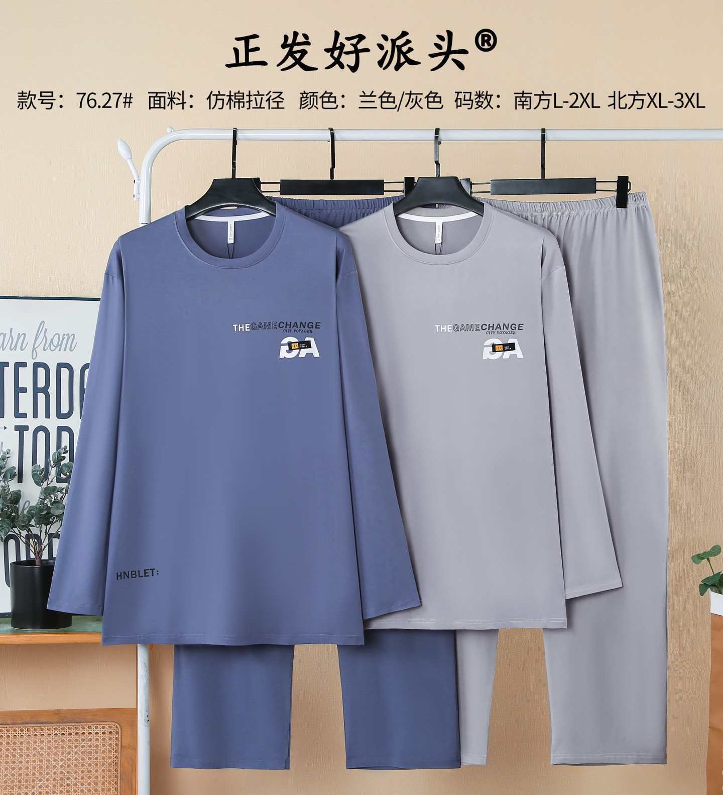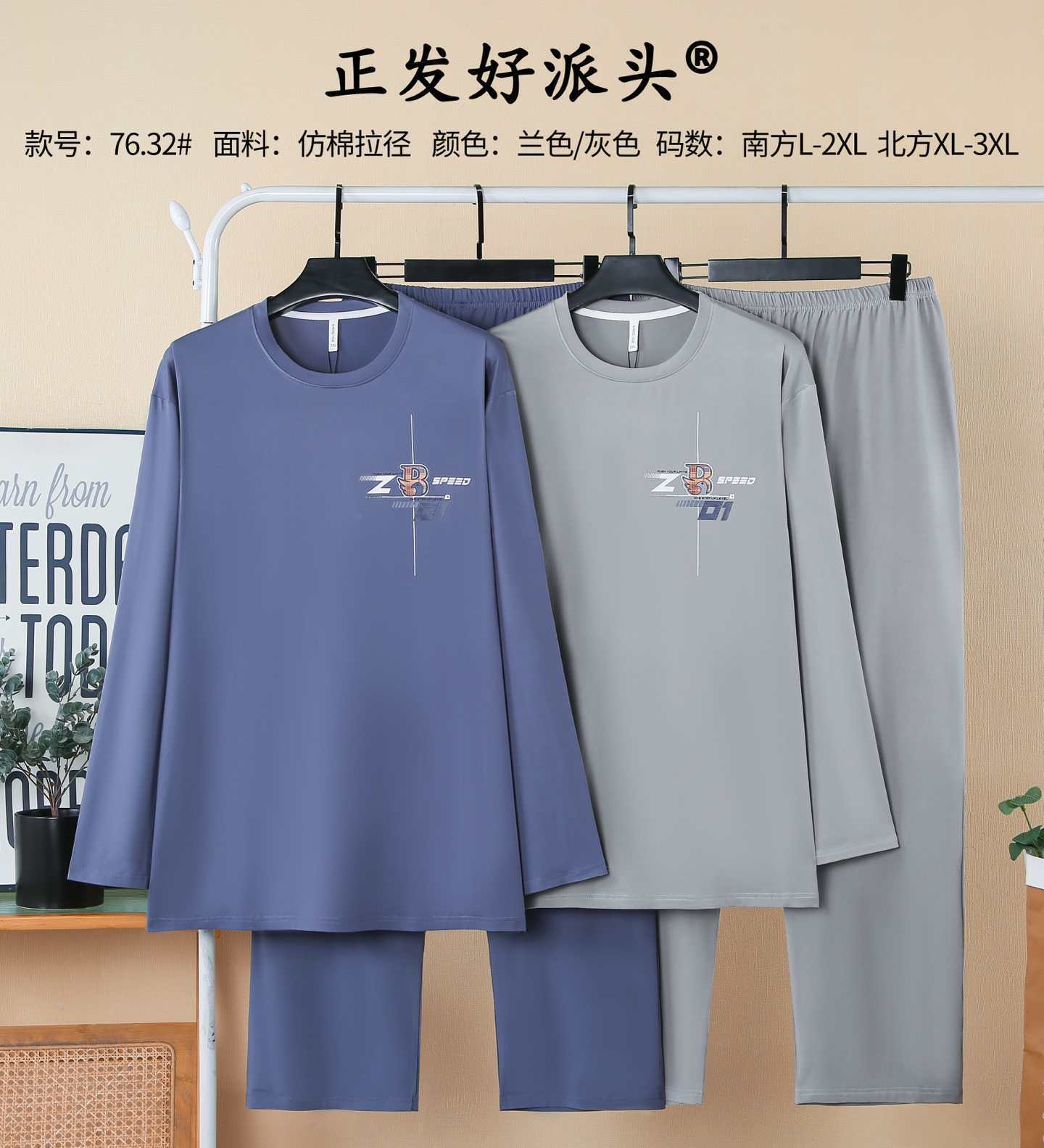 가을 2024 새로운 남성 풀오버 캐주얼 편안한 긴 소매 바지 세트 잠옷 모조 면 홈 옷스토어 가기