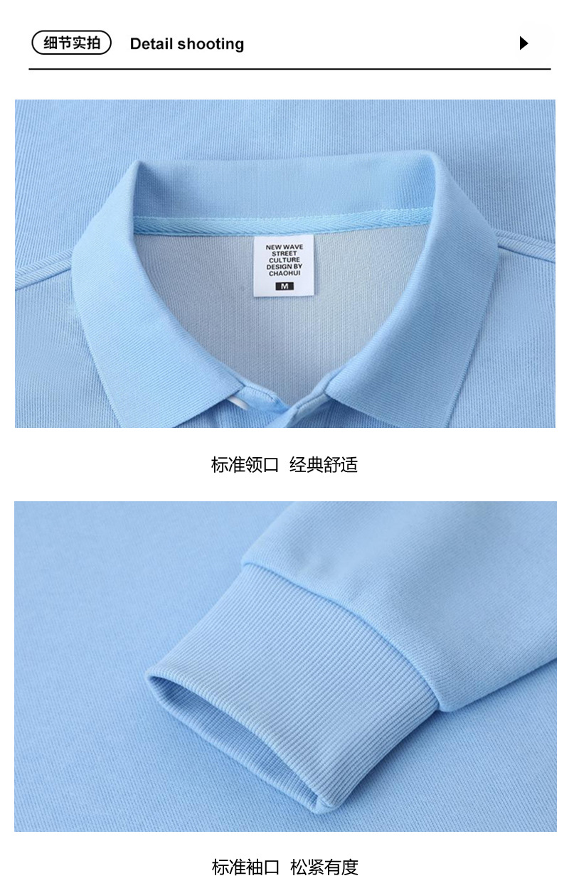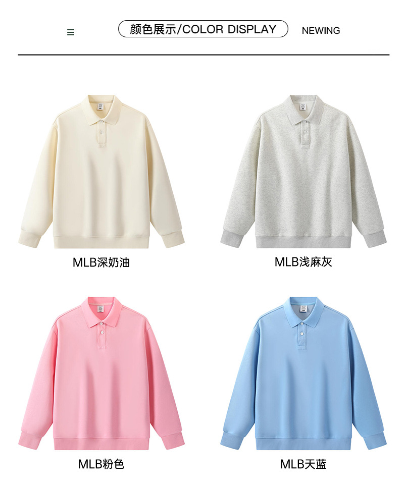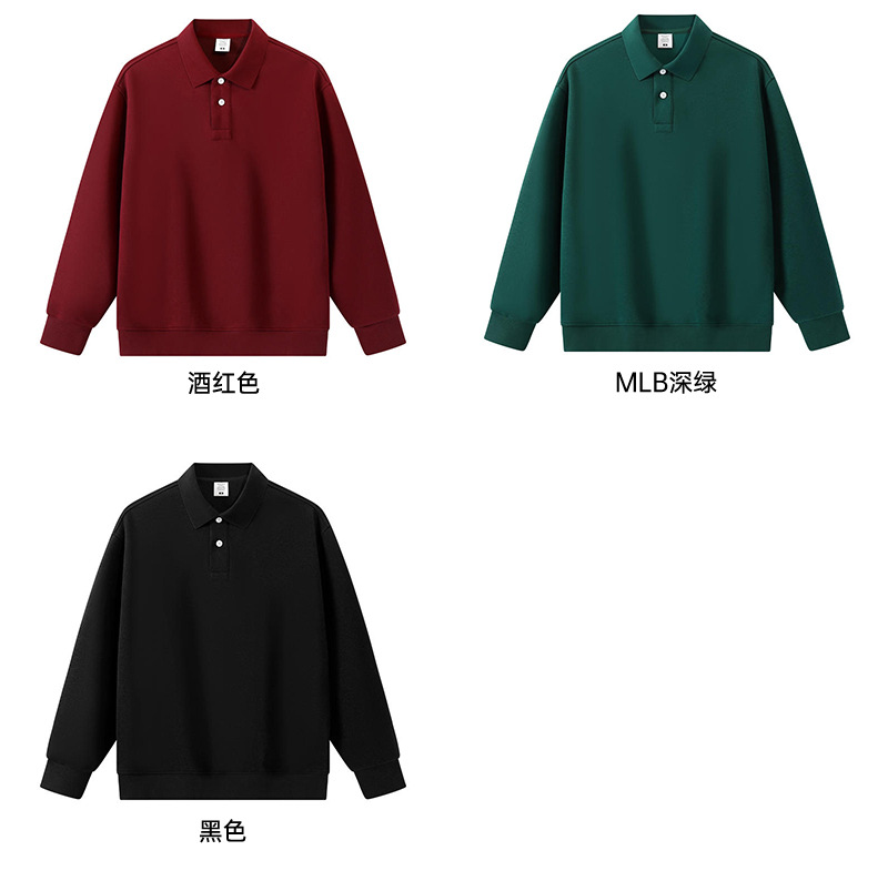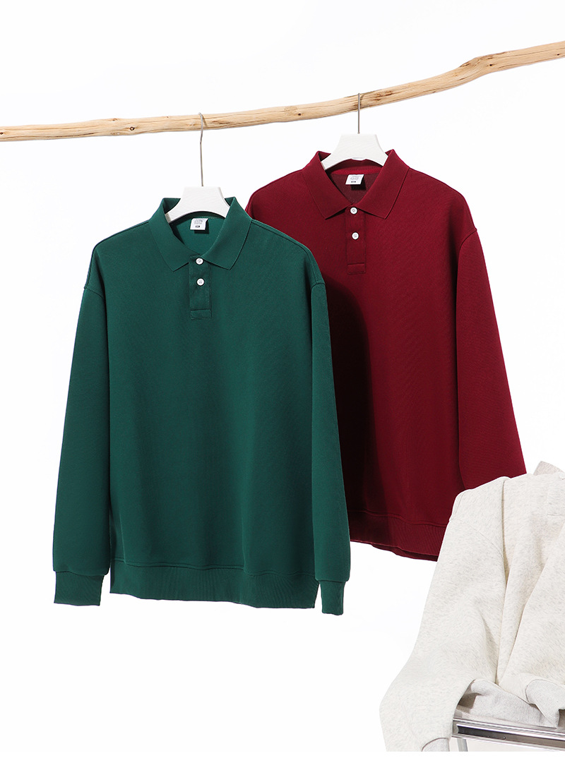 봄과 가을 새로운 무거운 350g 트렌디 브랜드 복합 면 POLO 칼라 스웨트 셔츠 남자의 단색 느슨한 조커 옷깃 긴 소매스토어 가기