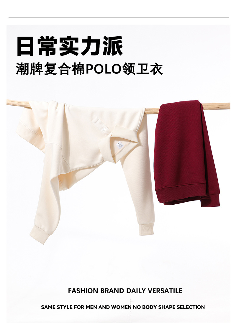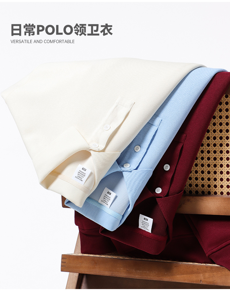 봄과 가을 새로운 무거운 350g 트렌디 브랜드 복합 면 POLO 칼라 스웨트 셔츠 남자의 단색 느슨한 조커 옷깃 긴 소매