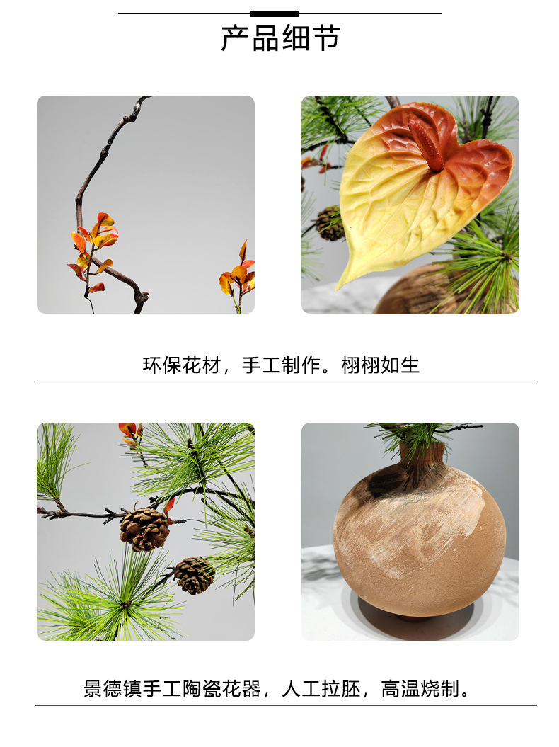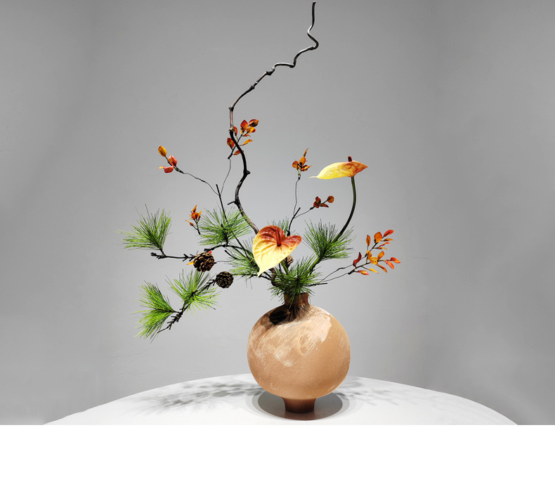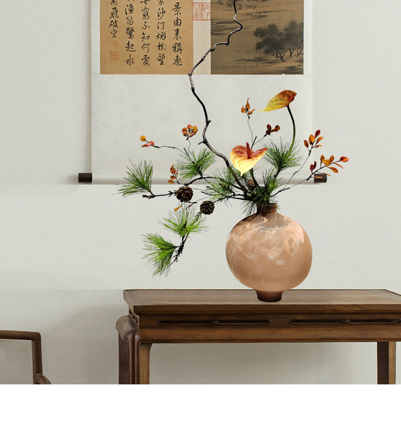 새로운 중국 스타일 죽은 지점 시뮬레이션 꽃 아트 레트로 세라믹 꽃 꽃병 일본 스타일 홈 가구 장식스토어 가기