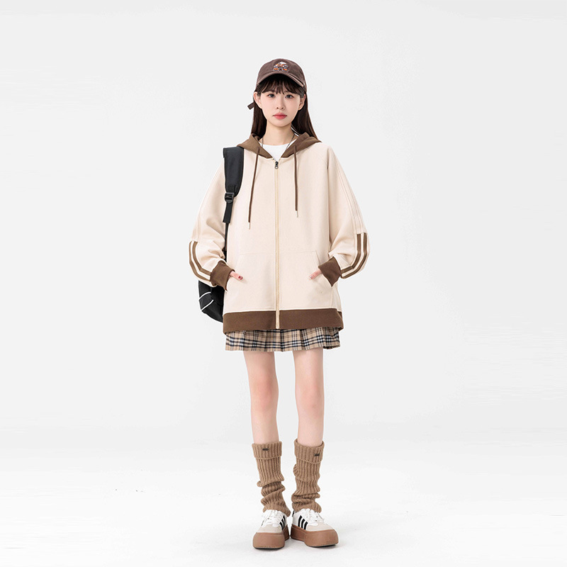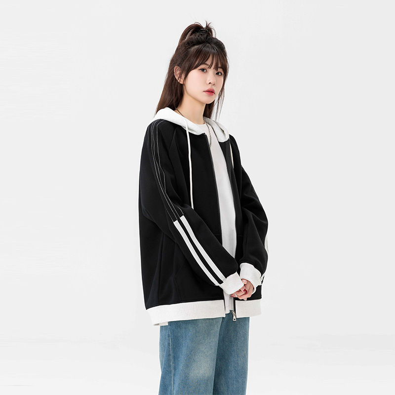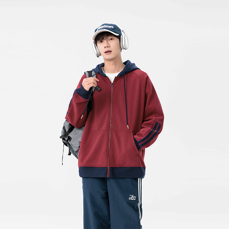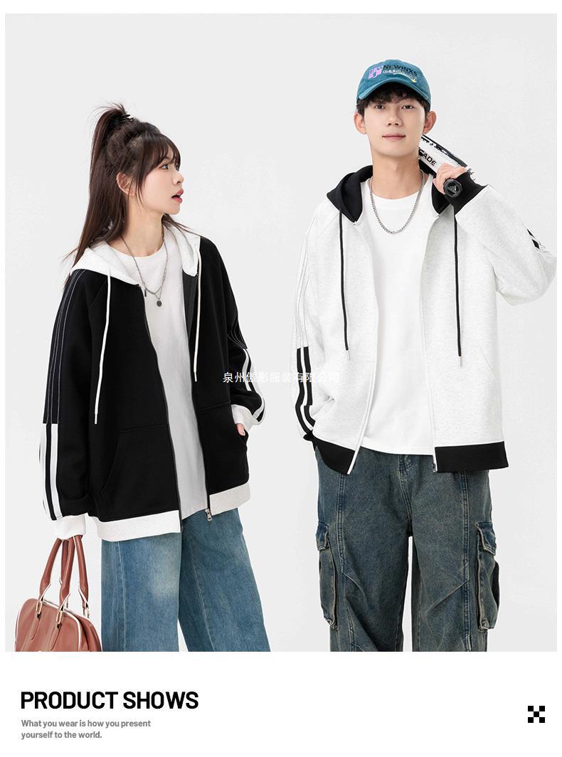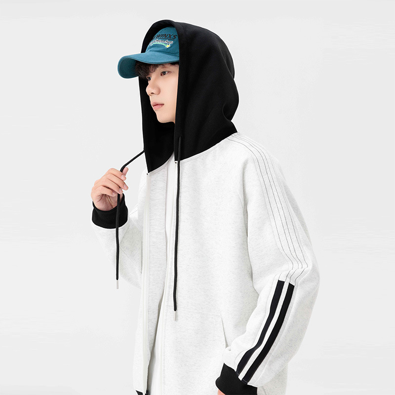 국경 간 도매 카디건 조끼 남성 가을과 겨울 2023 새로운 조수 브랜드 미국 줄무늬 헤비 후드