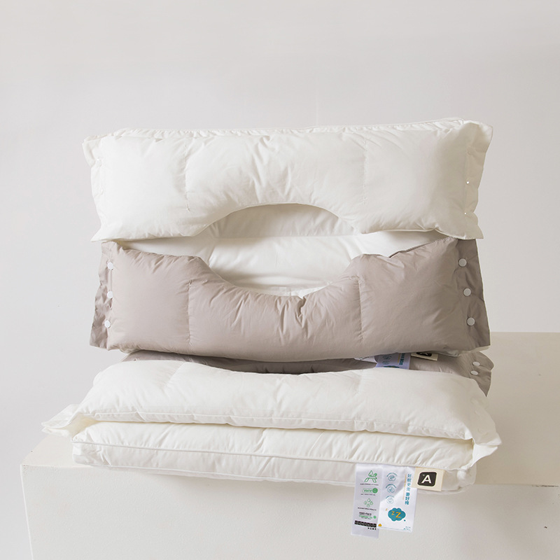 순면 3-in-1 수면베개, 목보호베개, 목보호 겸용베개, 얼굴에 압력을 가하지 않는 조절 가능한 베개, 1인용 학생베개